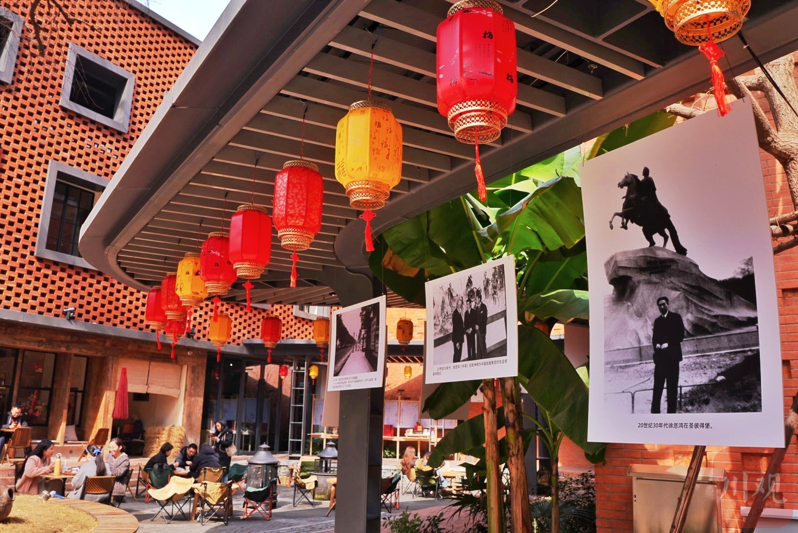 市民游客在川报报业博物馆休闲,与“大师”零距离。