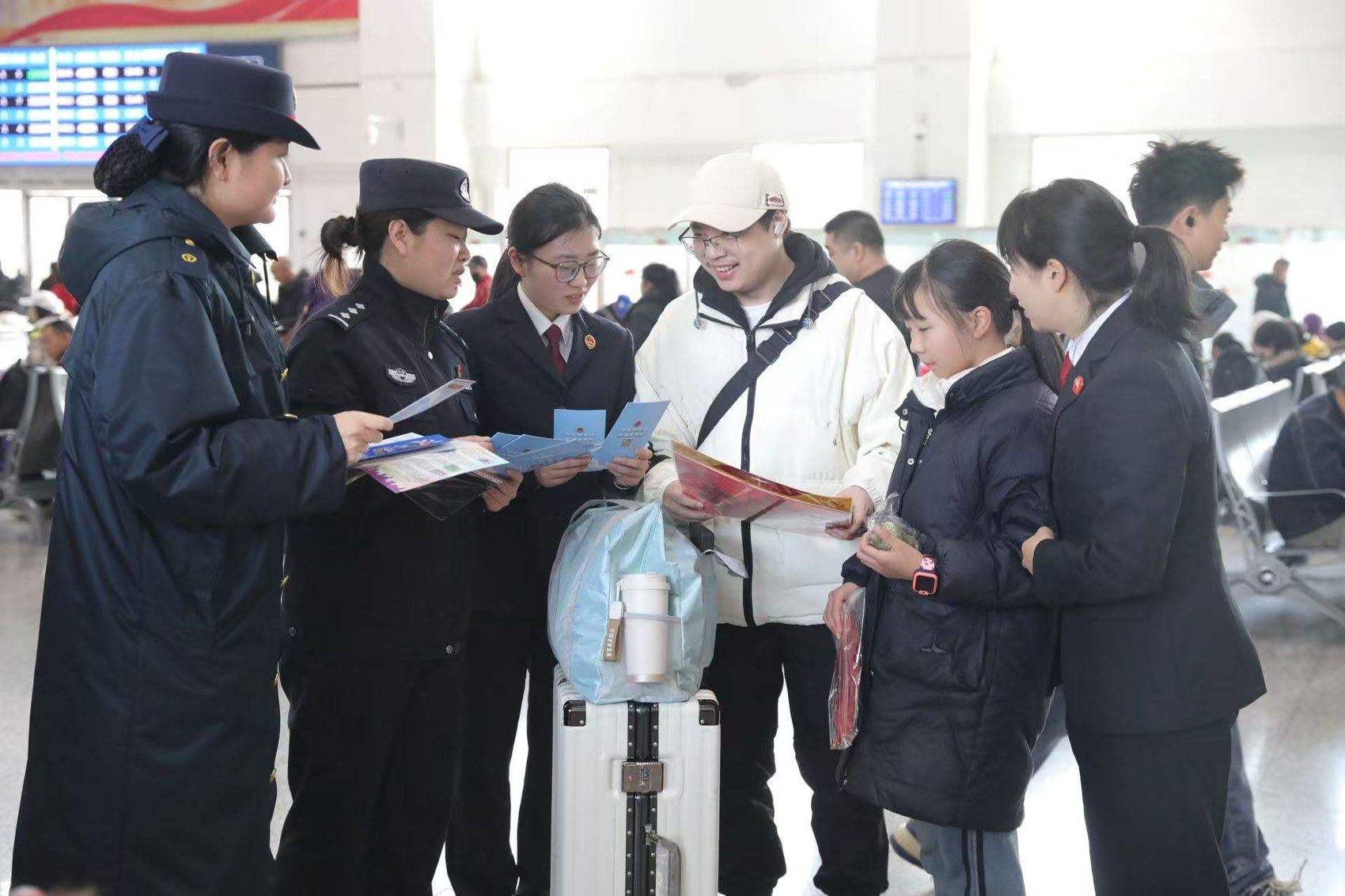 今日正午时分,车站活动渐近尾声。许多旅客的行李中,除了年货与乡愁,又多了一份沉甸甸的“法治年货”。他们带着这份特殊的守护,汇入归家人潮,步履更加笃定。