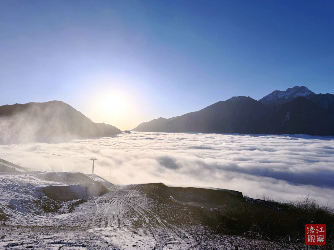 车子在盘山路上行进,窗外是渐次明亮的巍峨雪山。抵达时,雪场正笼罩在翻涌的云海之中。“每次看到这片云海,心里都特别开阔。”潘煜娟说。