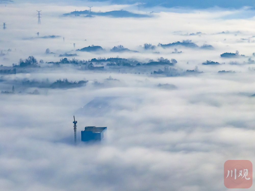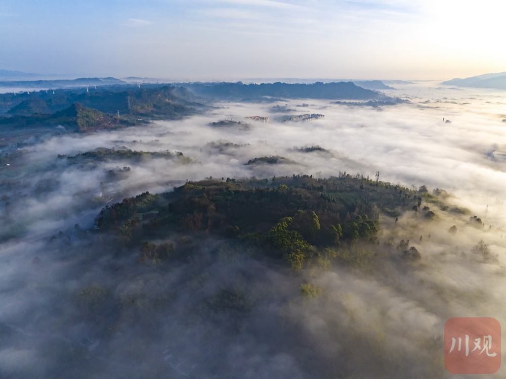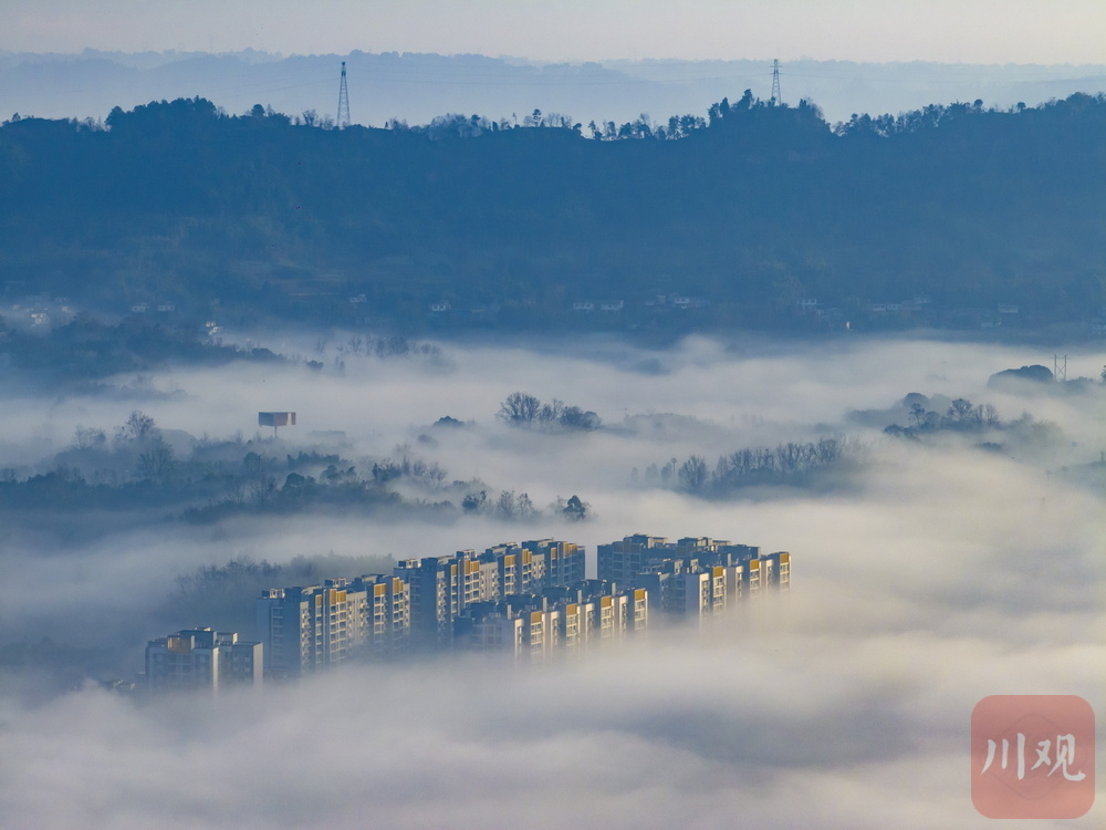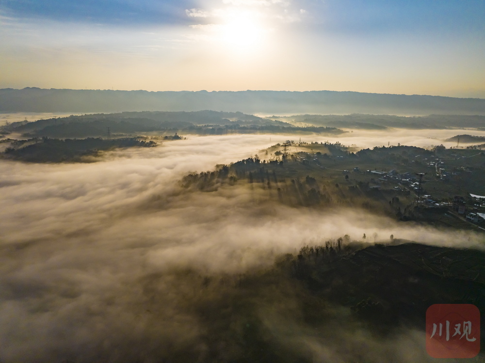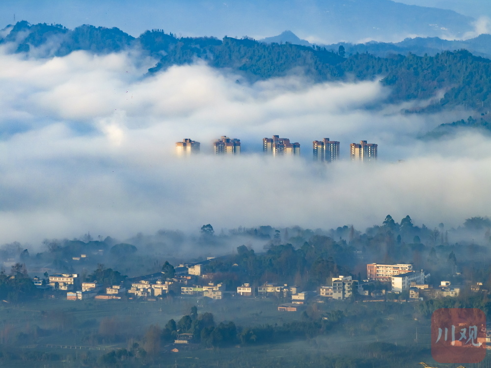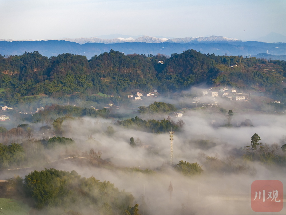 2月10日清晨,雨过天晴的雅安市雨城区草坝镇、名山区永兴镇等地出现了如梦如幻的云雾景观,茶园、道路、村庄等在薄雾中若隐若现,层层远山、峰呈现出青黛之色,仿佛被大自然用浓墨淡染的诗意丹青画卷,美不胜收。