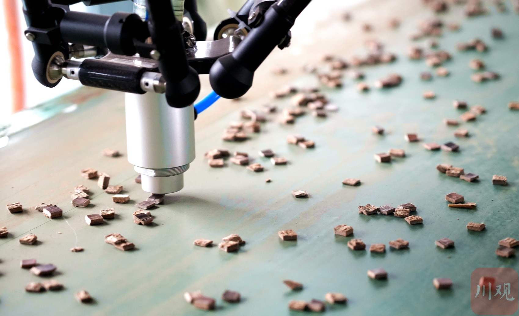 蜘蛛机械臂正在吸取厚度不足3mm的杜仲丁。