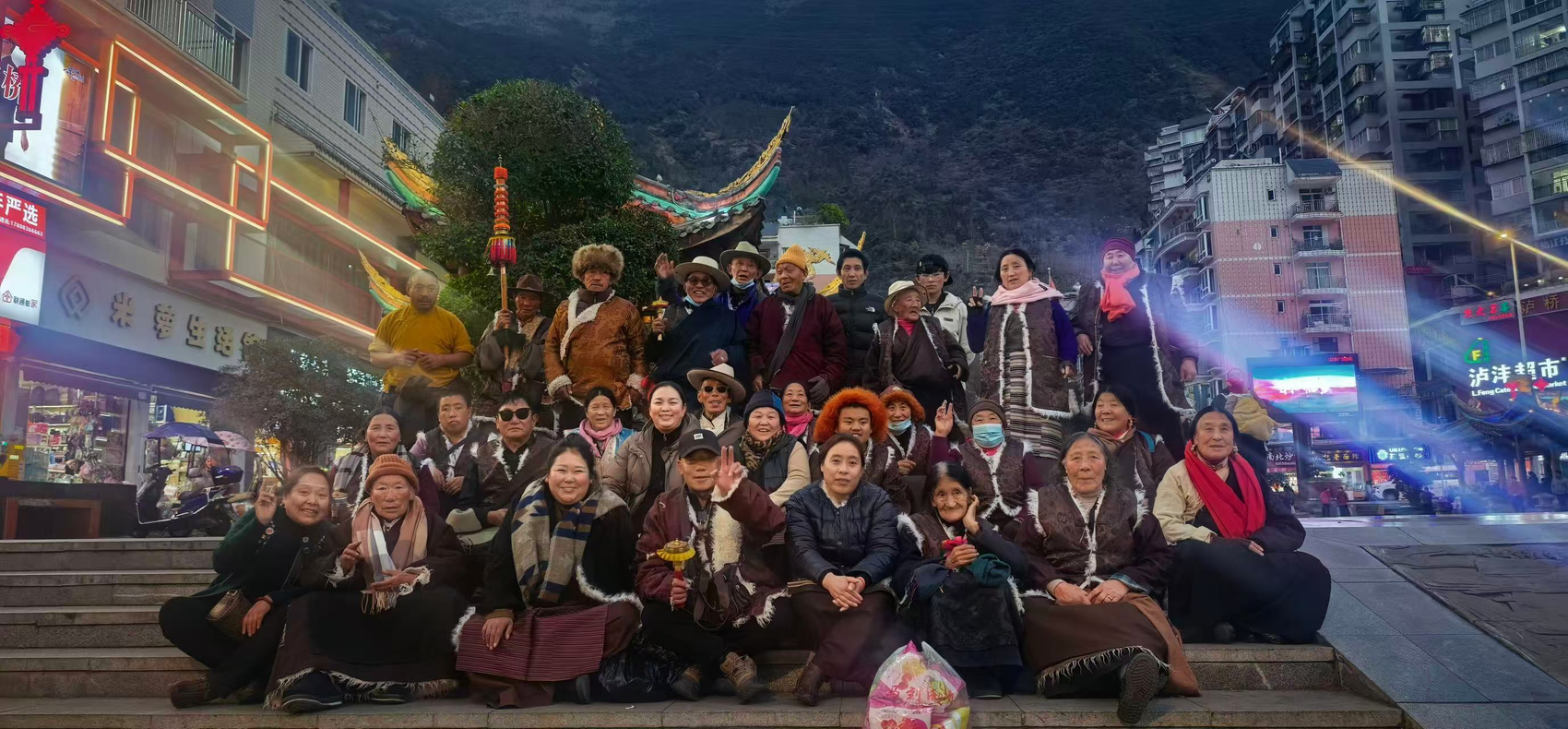 已经抵达泸定县的甘孜县敬老院的26名老人。甘孜州民政局供图