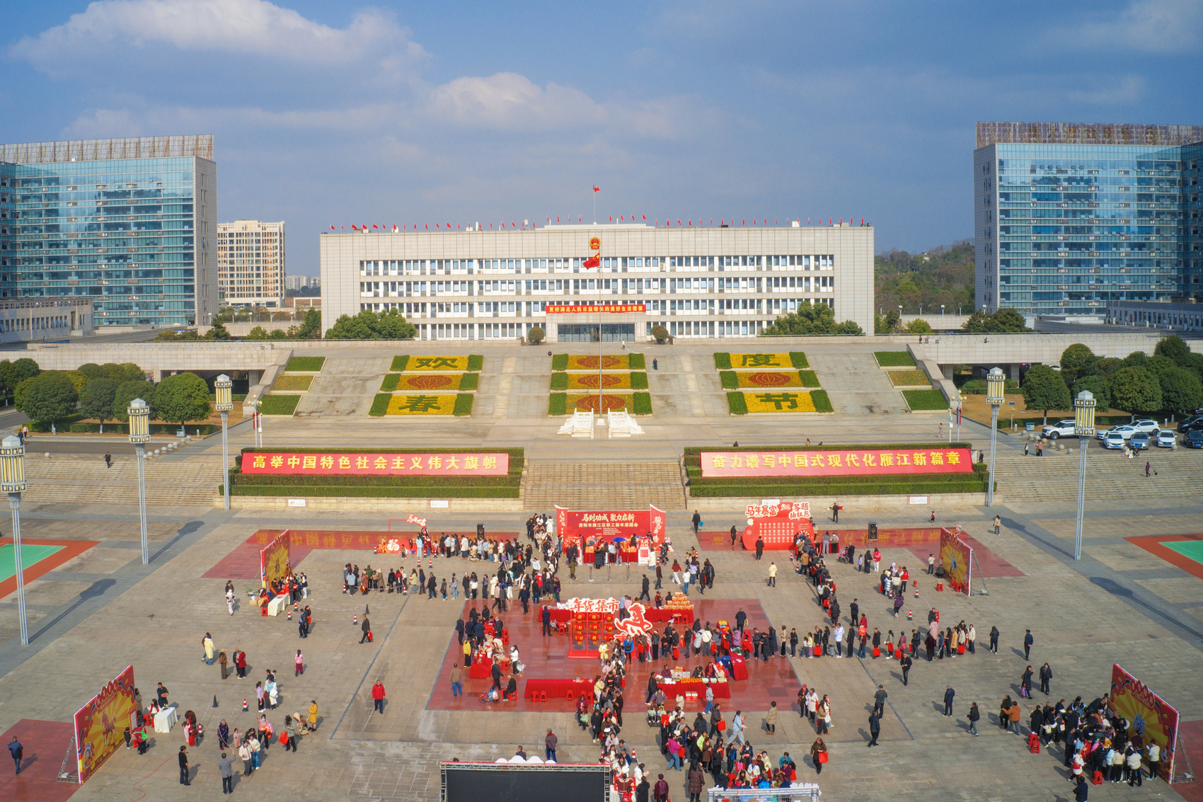 2026年2月10日下午,资阳市雁江区市民广场上洋溢着浓厚的新春气息。一场以“马到功成·聚力启新”为主题的职工新年游园会在此举行,吸引了全区700余名企事业单位职工参与。本次活动由雁江区总工会牵头,联合共青团雁江区委、雁江区科学技术协会共同主办。