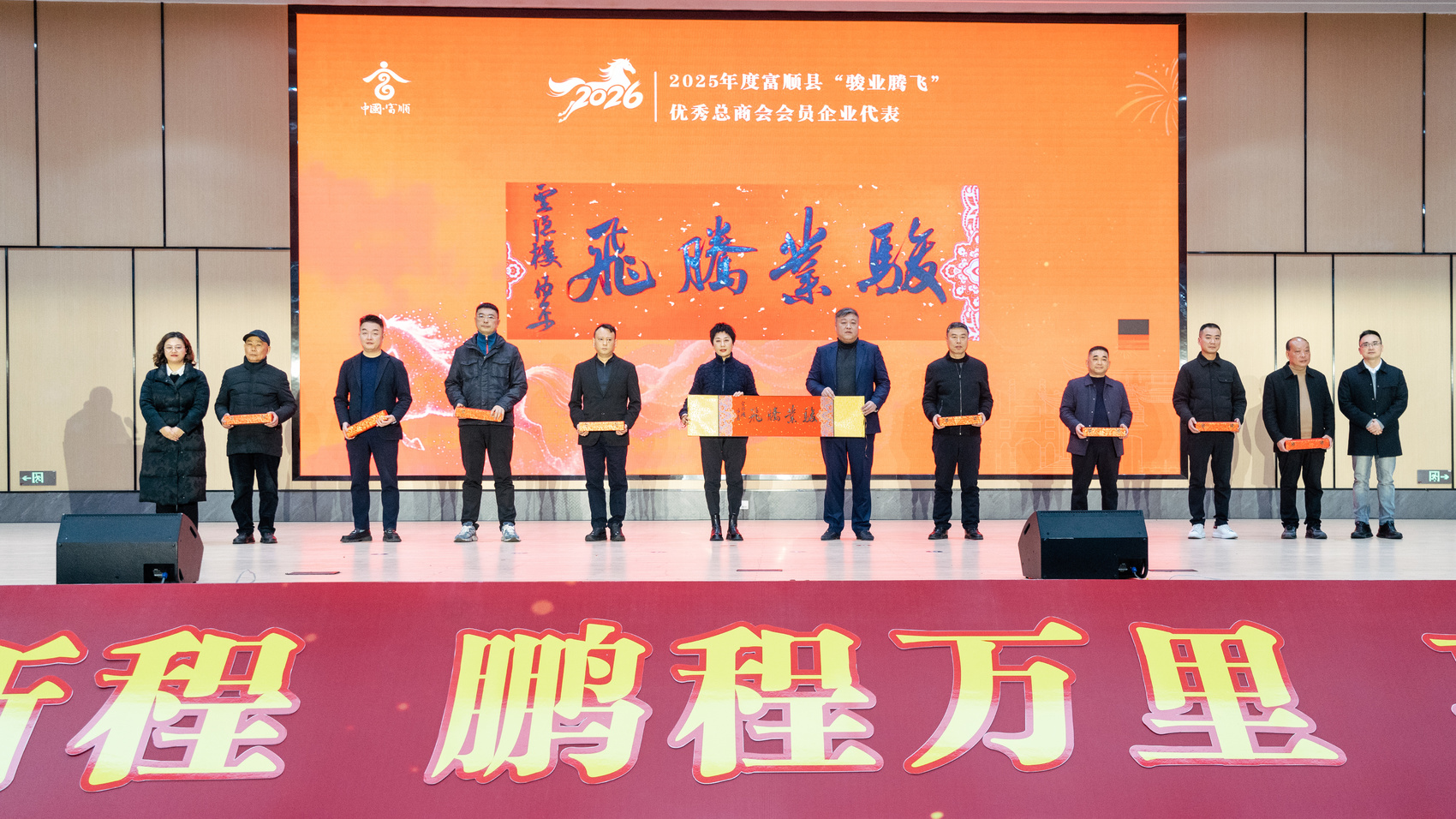 会上,富顺县相关负责人通报了2025年全县经济社会发展情况,开展投资环境推介并发布富顺县投资机会清单。富顺县工商界企业家代表进行了风采展示,集中展示了“善行致远”爱心奉献企业家、“骏业腾飞”富顺总商会会员企业、“马跃新程”富顺先进商会、“有凤来巢”富顺招商引资先进企业等代表的奋斗风采与担当精神。相关企业家围绕产业发展、项目落地、政企协同等作了交流发言,为推动富顺高质量发展积极建言献策。