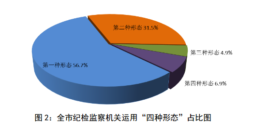 2025年,全市纪检监察机关运用“四种形态”批评教育和处理6601人次。其中,运用第一种形态批评教育和处理3745人次,占总人次的56.7%;运用第二种形态处理2082人次,占31.5%;运用第三种形态处理318人次,占4.9%;运用第四种形态处理456人次,占6.9%。