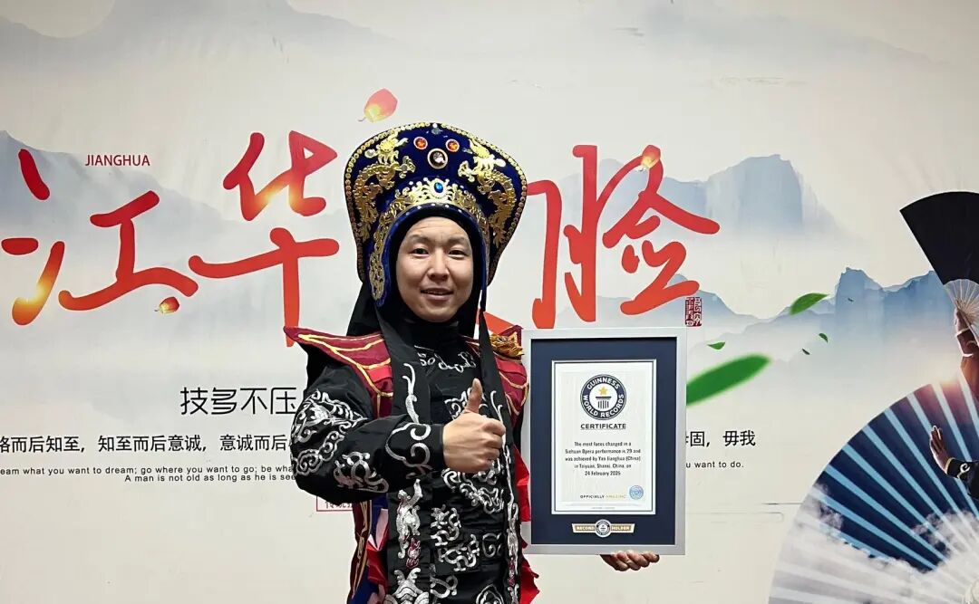 2月10日,红星新闻记者从吉尼斯世界纪录获悉,来自山西太原的闫江华凭借连续完成29次脸谱变化,创下“一场川剧表演中完成最多次变脸”的世界纪录。