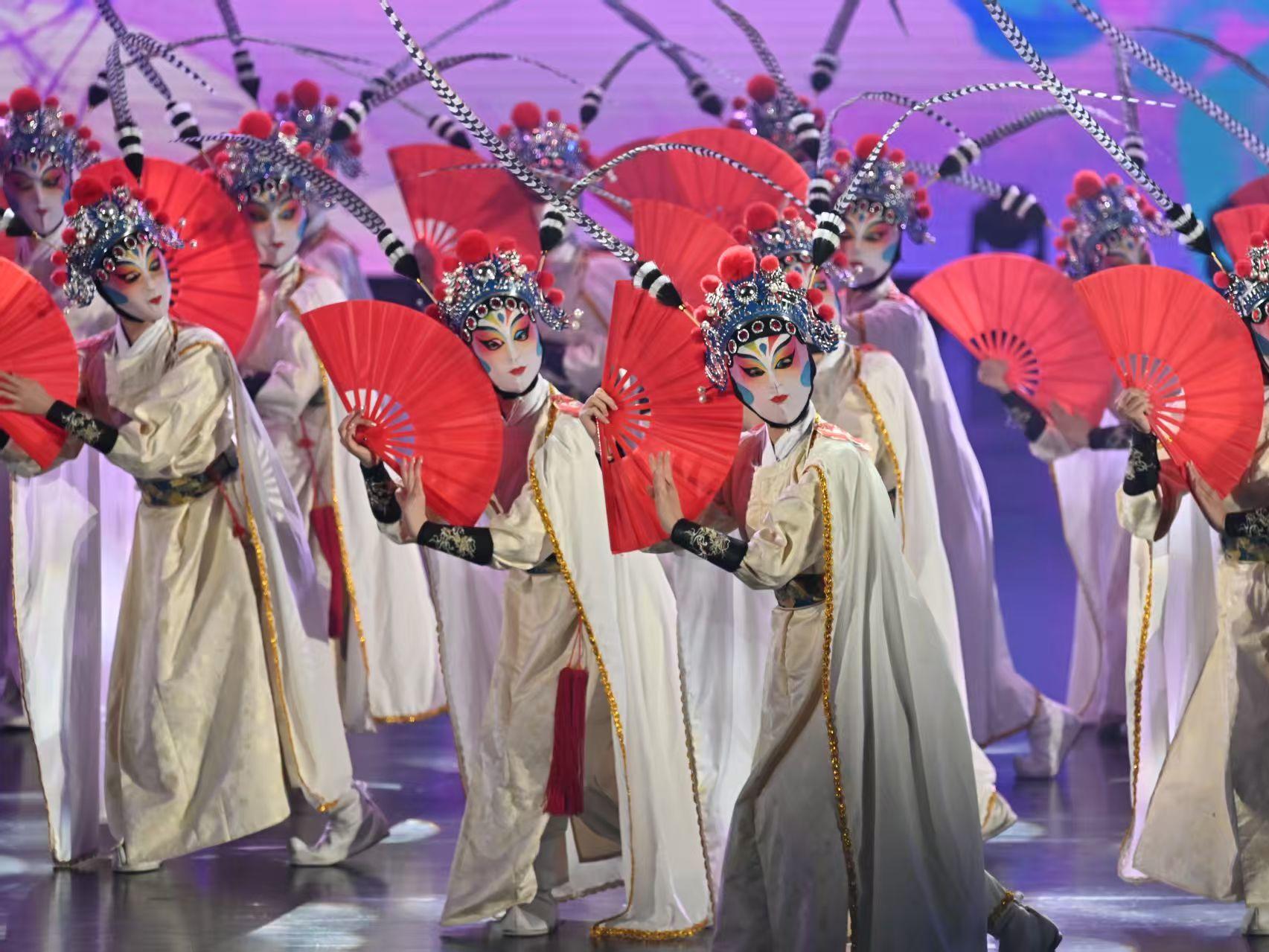 当晚,成都市东安湖大剧院热闹非凡、戏韵绕梁。百余位青年新生代川剧演员共唱《百花争妍》,并同舞台左右动态的“历史长卷”拉开序幕。