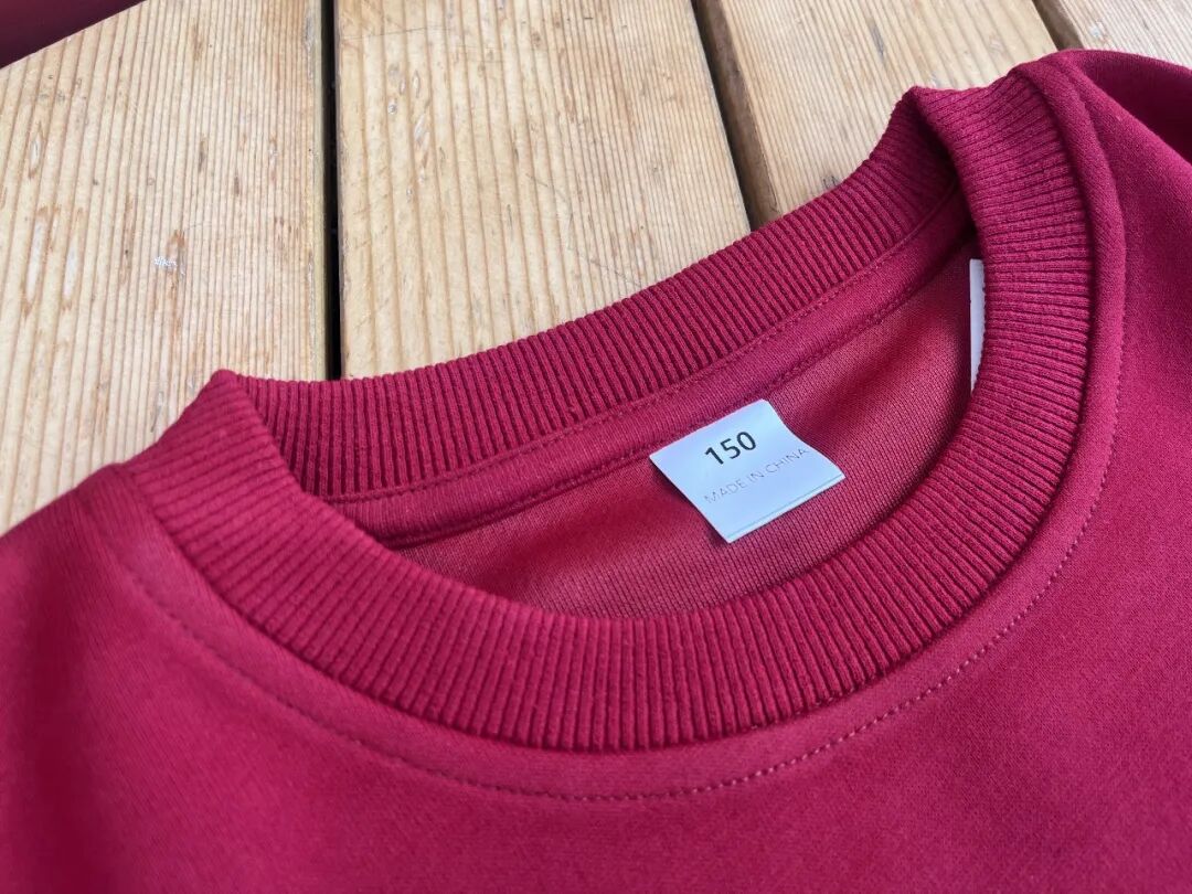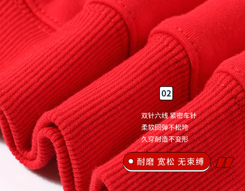 这款卫衣共有黑色、酒红和红色3个颜色,分为常规和加绒两种厚度,尺码齐全。