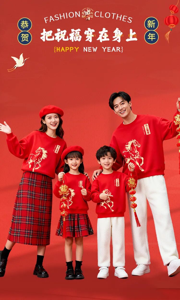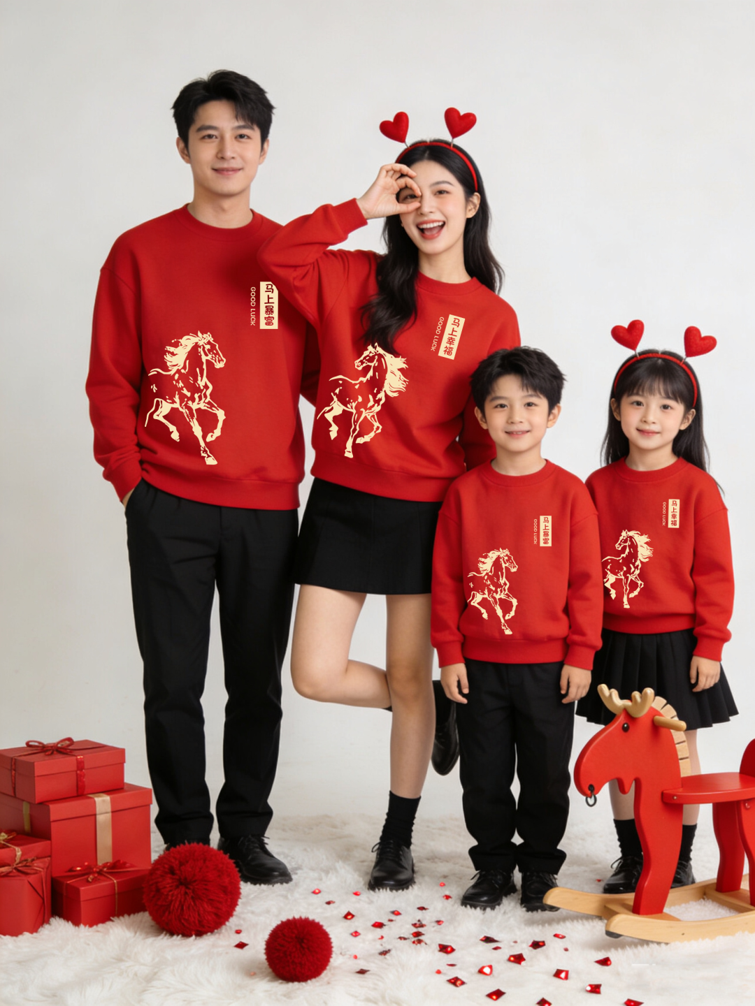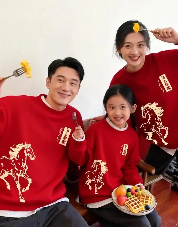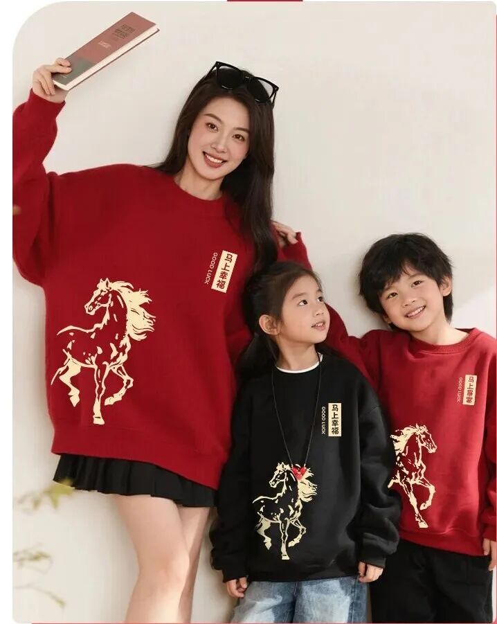 今年,不妨试试这件专为全家设计的马年亲子卫衣,让团聚的温暖成为节日装扮的一部分,让服装告诉大家:我们是一家人。