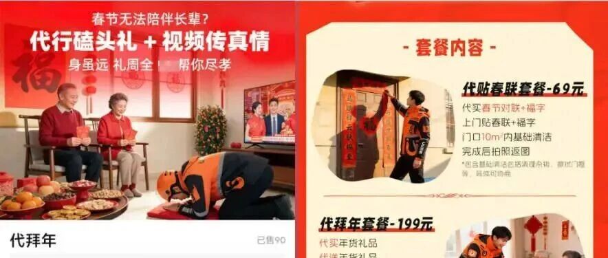 近日,一家总部位于河南郑州的跑腿公司推出了“代拜年帮尽孝”服务,引发关注。