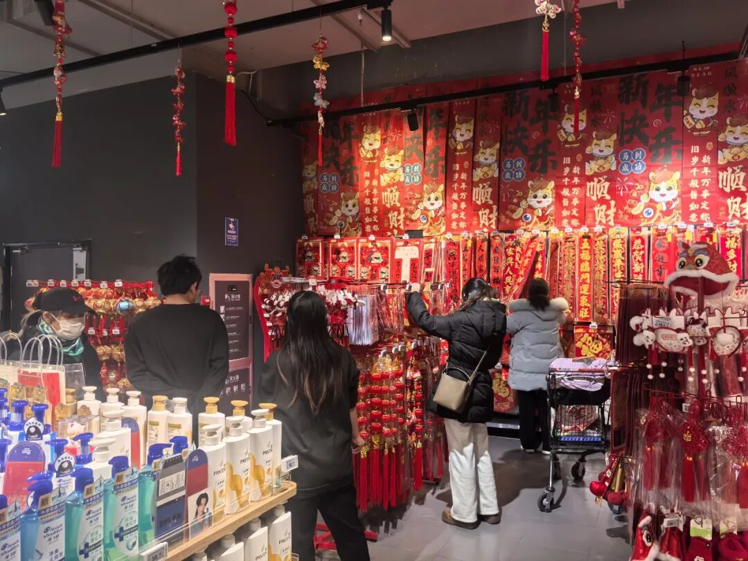 走出超市,李女士的购物袋里已经装得满满当当。砂糖橘、草莓、坚果、春联……她看了看手机,才晚上6点半。“今年办年货,真轻松!”