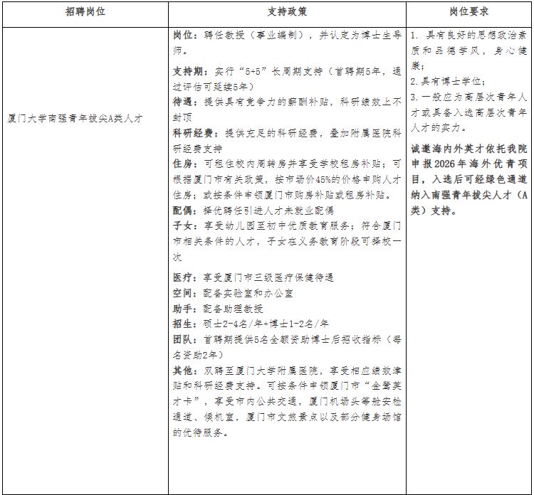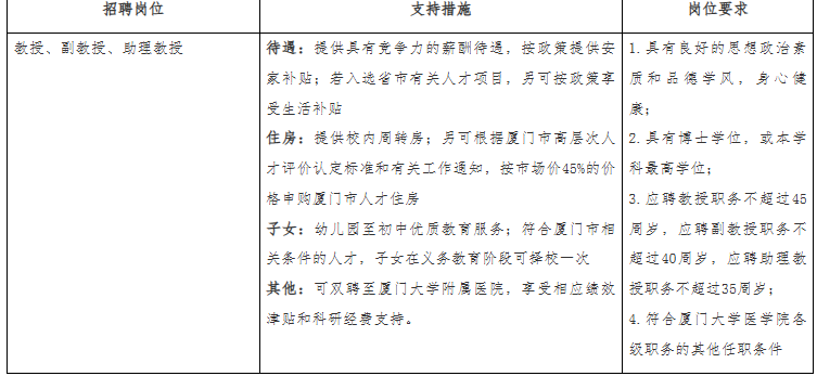 厦门大学医学院长期面向海内外公开招聘优秀人才