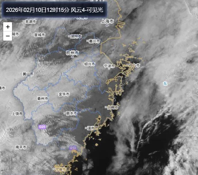 昨天(2月10日)的阳光主要在浙南地区现身,浙中北地区上空云层较厚。不过中午时分,浙北地区迎来了“小惊喜”,云层打开,阳光探了出来。这份“惊喜”有些短暂,到了下午晚些又被厚重的云层盖住了。
