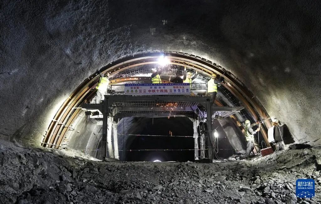 据中铁十四局项目负责人朱耀璋介绍,隧道最大埋深1160米,最小仅31.6米,高地应力、大变形、偏压、沉降等风险交织,施工难度大。