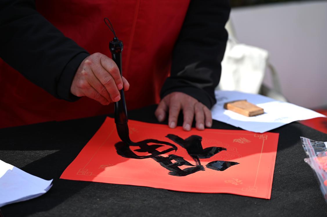 2月10日的午后,阳光斜照在简阳市铁堰社区党群服务中心前的小广场上。在法治春联书写处,墨香悄悄弥漫开来——不一会儿,桌前便三三两两地站了些人。村民们一边轻声交谈,一边等着将一副墨迹未干的春联带回家中。