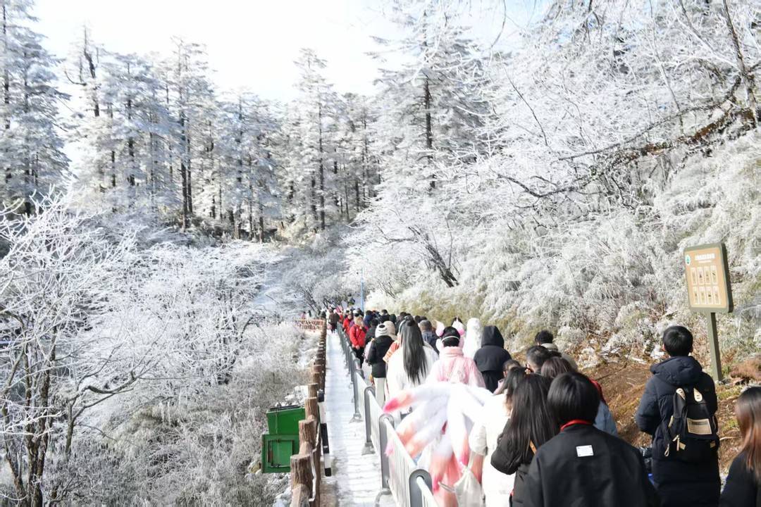 据景区统计,当前,瓦屋山日均接待游客量稳定在5000至7000人次,已成为西南地区冬季旅游的热门打卡地,预计春节期间单日客流将突破1万人次。