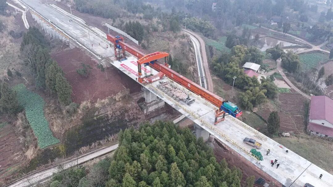 另据国铁成都局消息:今日10时,在位于四川省资阳市乐至县的成渝中线高铁施工现场,随着最后一孔箱梁精准架设落位,成渝中线高铁四川段桥梁建设全部完成,为后续铺轨及站后工程施工奠定了坚实基础,标志着成渝中线高铁建设进入全面冲刺阶段。