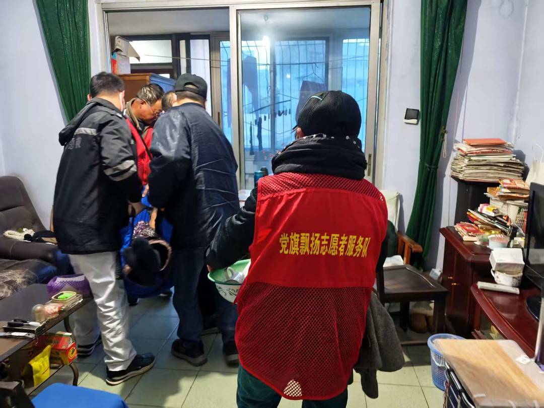 当晚,社区独居老人何孟芳在家中不慎摔倒,疼痛难忍。邻居虽已将其扶上床,但老人因担心麻烦他人,执意等待远在北京的儿子回来,坚决不肯就医。危急时刻,邻居的电话打到华川社区,社区党委立即联系“党旗飘扬”服务队队长何培文去看看。