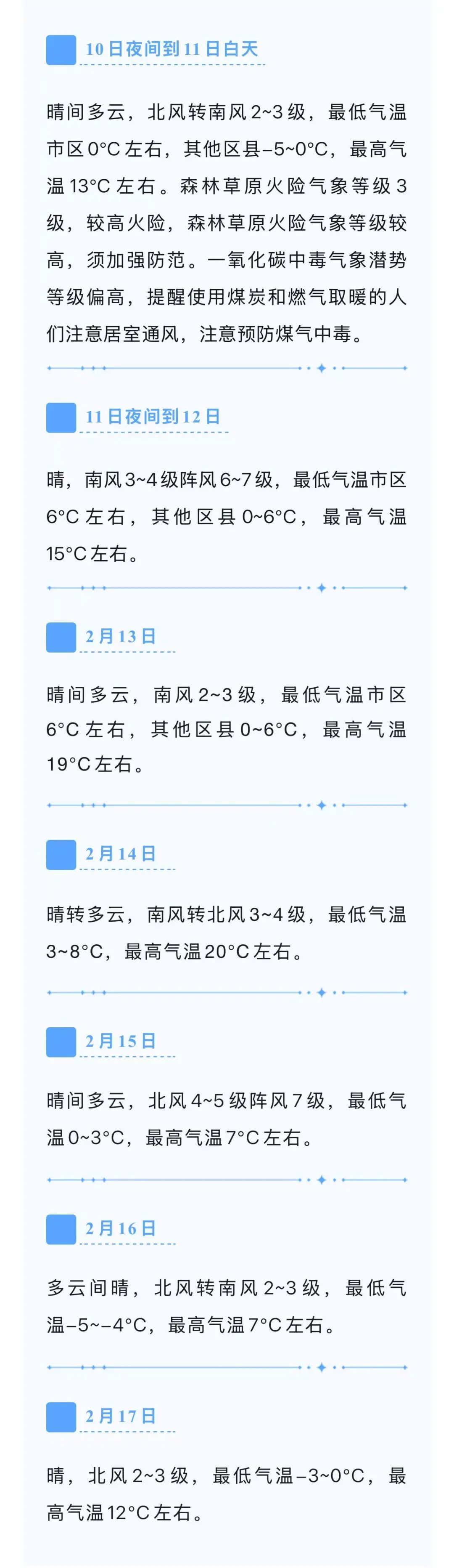 济南气象台今天下午发布未来7天的天气预报。未来七天天气晴到多云为主,无大范围大雾天气,能见度较好。前期气温攀升,15日有一次冷空气影响,气温明显下降,对春运无明显不利影响。