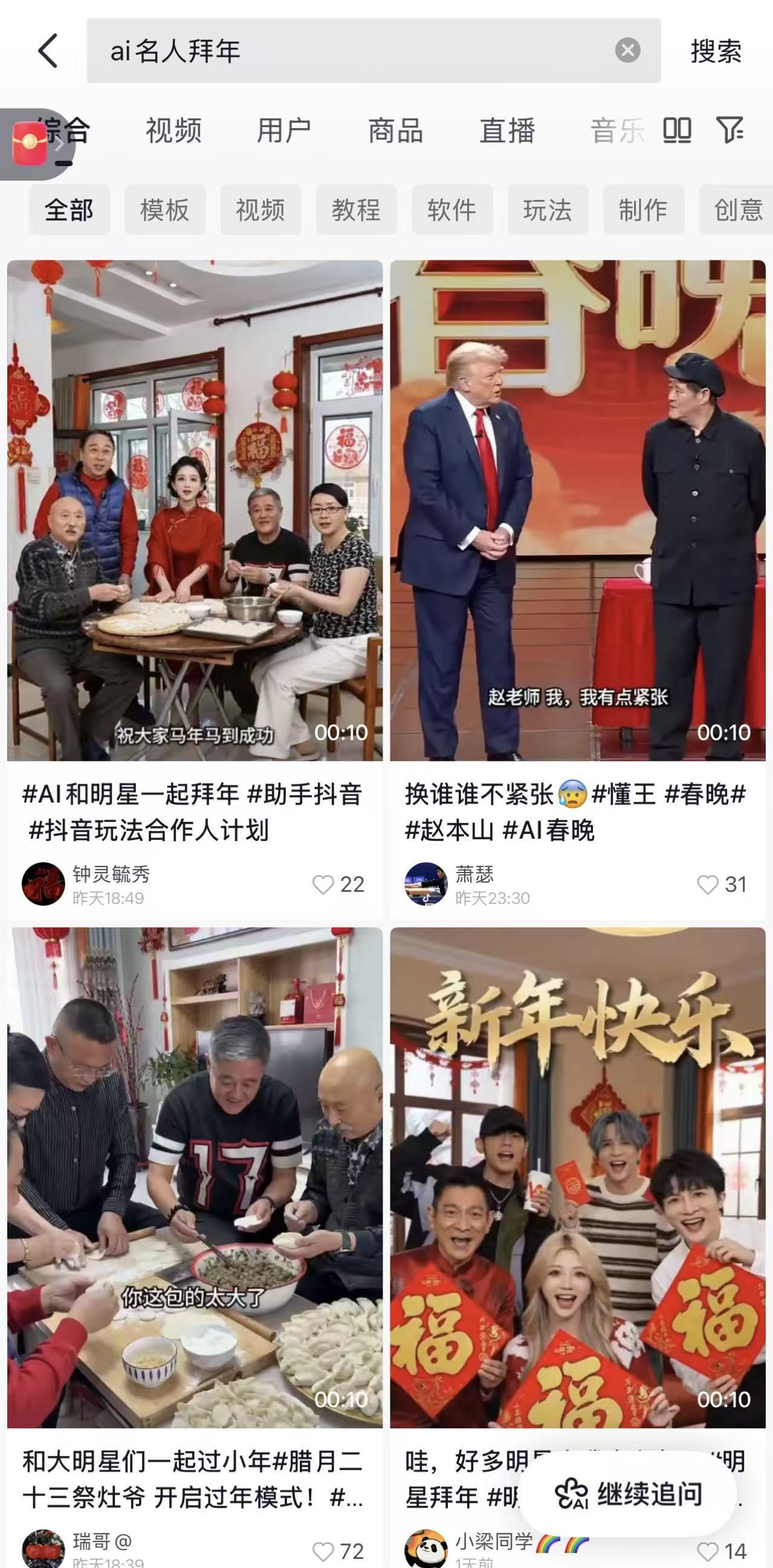 短视频平台AI名人拜年“拍同款”泛滥