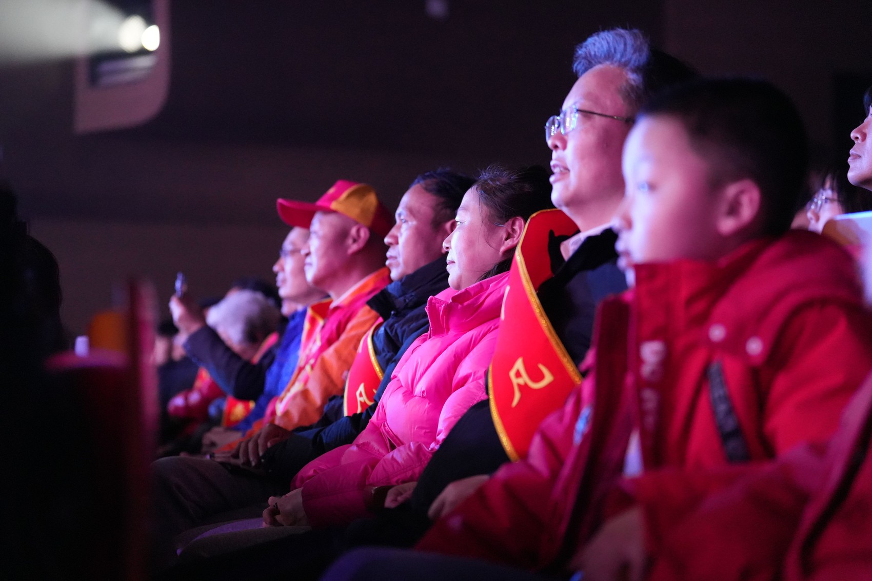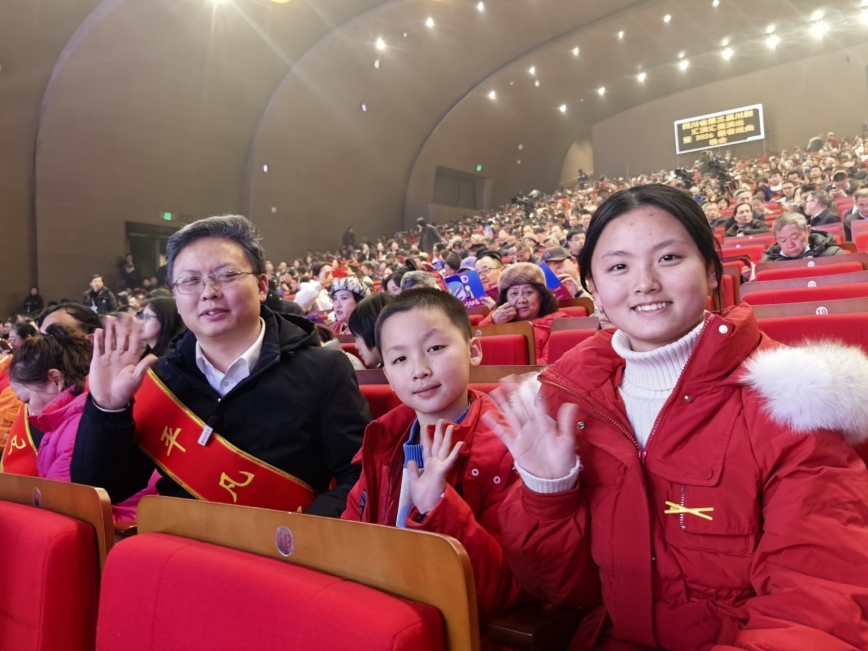 成都市“平凡之善”代表郭小林带着家人观看晚会。