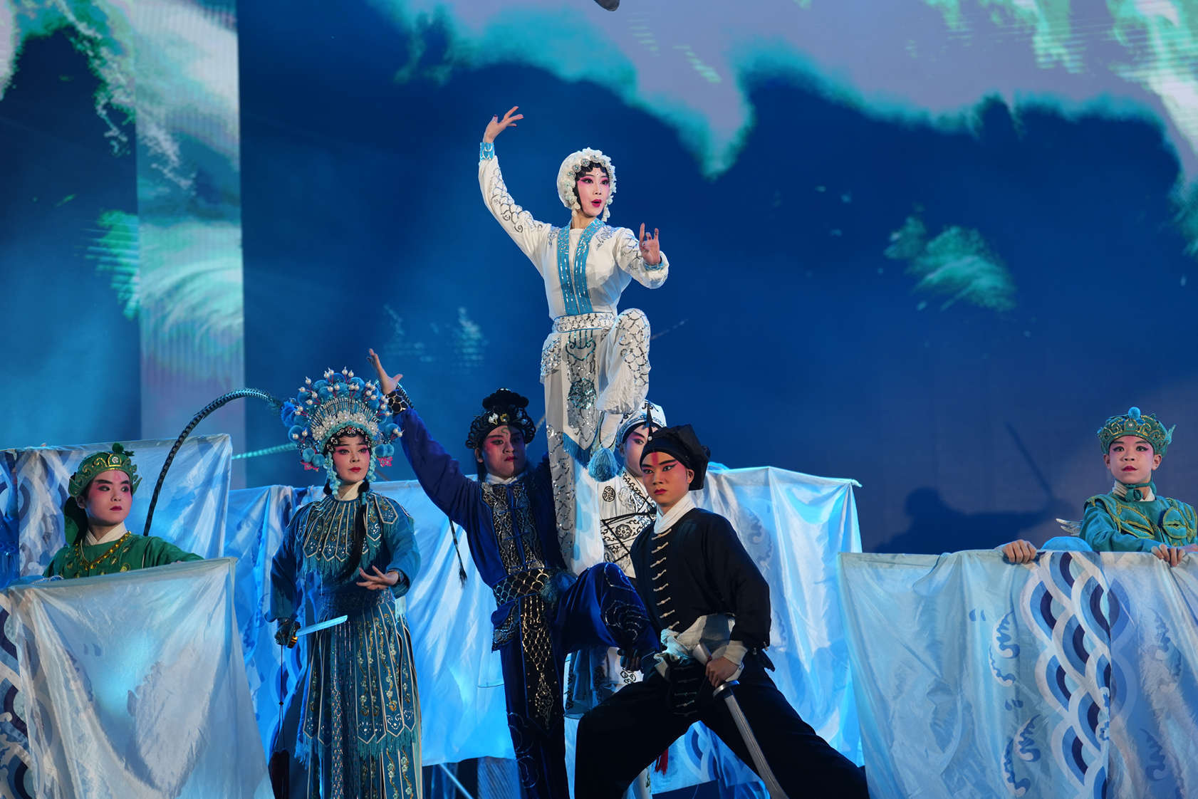 晚会现场汇聚川剧艺术精粹,百余位青年川剧演员以一曲《百花争妍》拉开演出序幕。川剧经典剧目荟萃《梦回·华章》、第十八届文华奖获奖剧目《梦回东坡》选段等精品节目轮番上演,川剧武戏新编《白蛇情·破禅关》、古典国风变脸舞蹈《风华鉴》等融入新潮表达,尽显新时代川剧薪火相传、守正创新的蓬勃生机,为现场观众奉上一场韵味十足的戏曲文化盛宴。