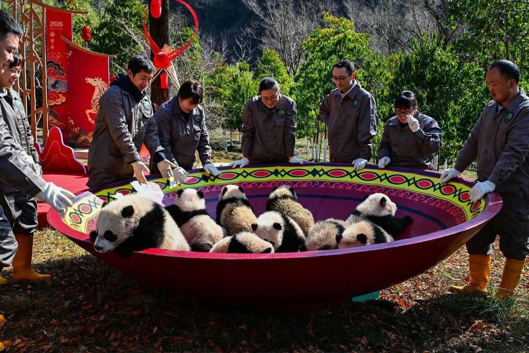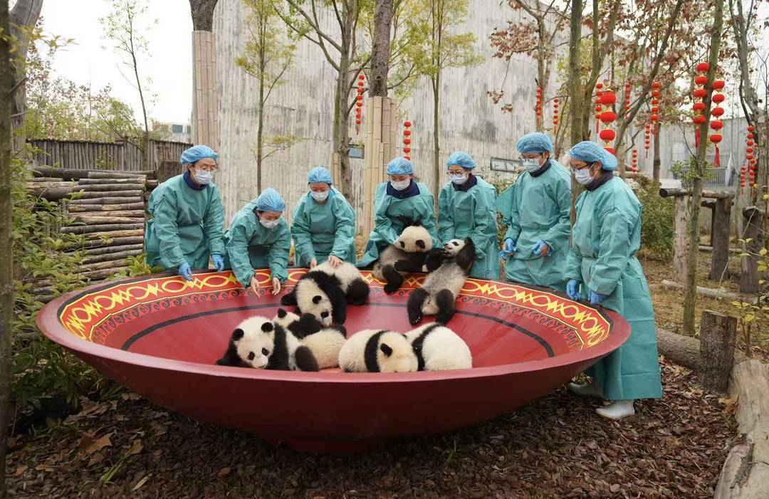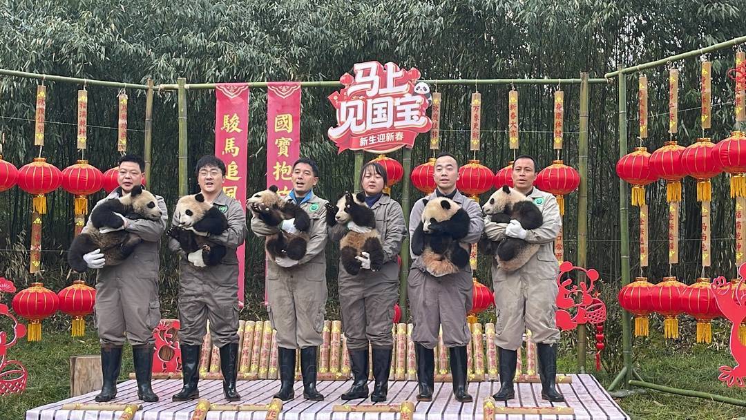 2025年,两家机构共成功繁育45只大熊猫。此次熊猫宝宝集体送祝福活动是两家机构三度联动贺岁,标志着合作共建与融合发展成果日渐丰硕。
