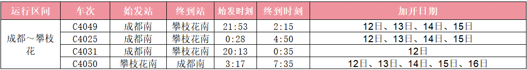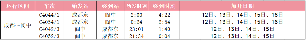 铁路部门将根据客流实际动态加开列车,列车开行信息和服务资讯具体情况请以12306官网或站车公告显示为准。