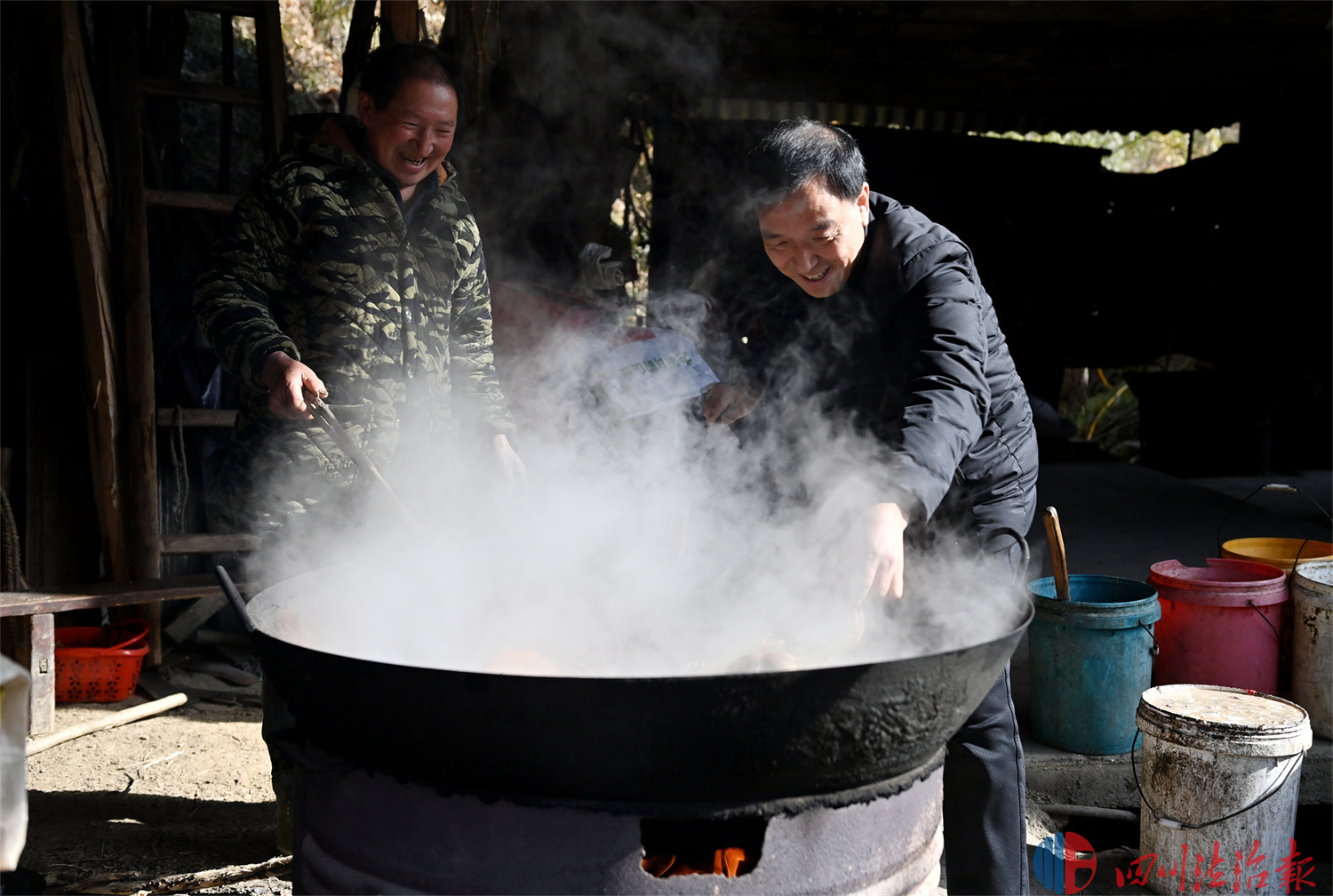 2月10日早晨,随着春节的脚步日益临近,万源市白沙镇水鼓坝村的年味在养殖户田先卫家的院坝里格外浓厚。万源市委政法委帮扶工作队的队员们与村民一道,抓牛、杀牛、分割、打包……大家分工有序,忙得热火朝天。阳光洒在每个人洋溢着笑容的脸上,烟火气中交织着收获的喜悦与新春的期盼。