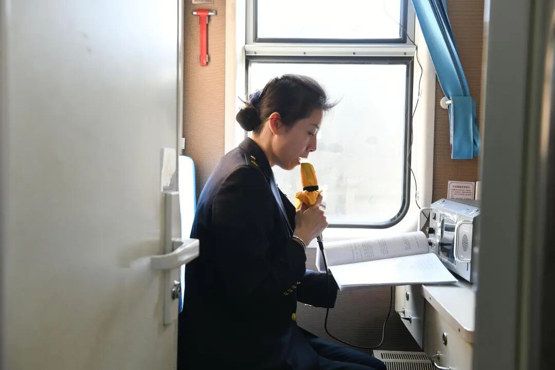 在这趟车上,列车员身兼多职:他们是导游,是服务员,也是宣传员。