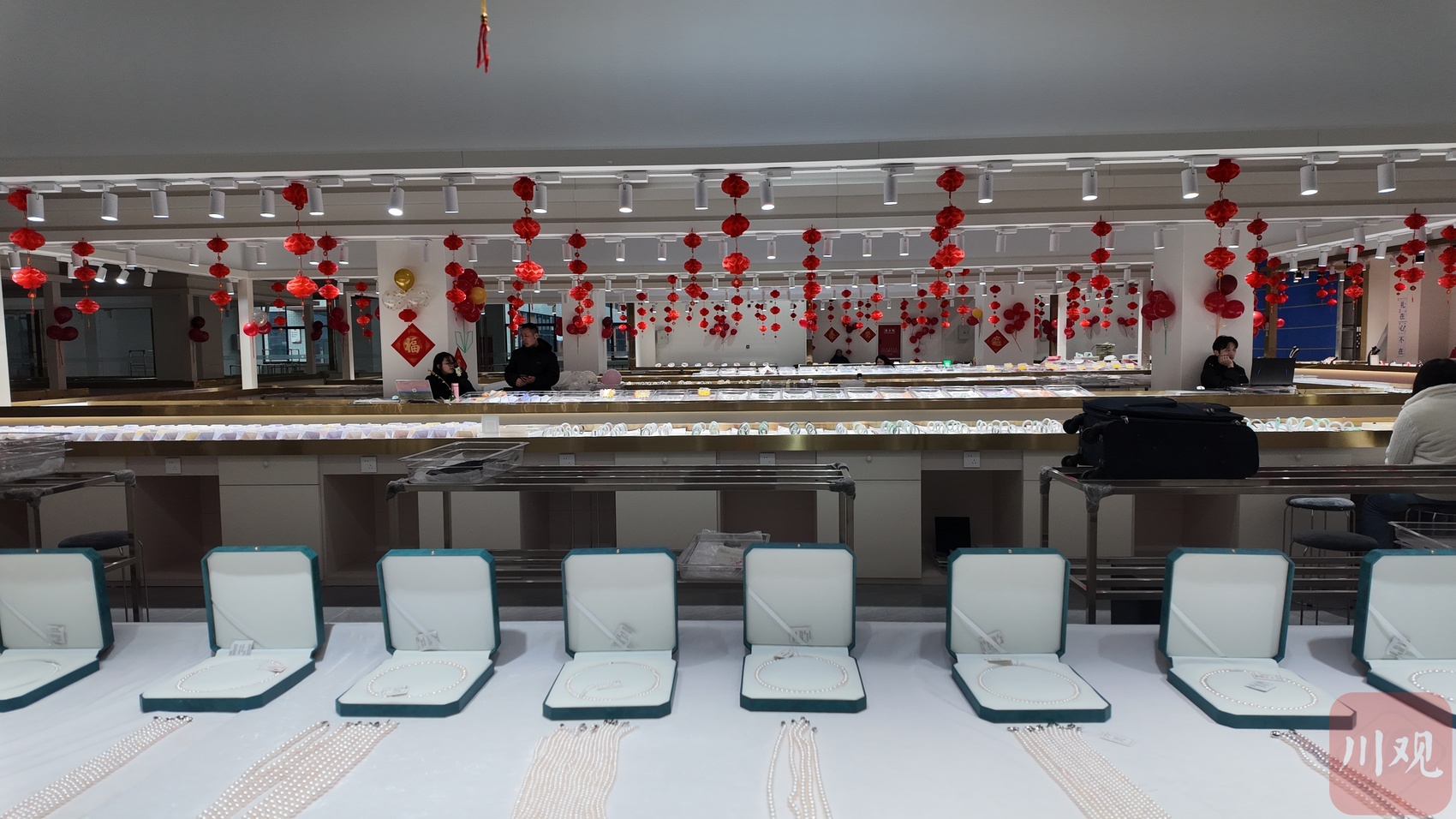 去年9月,开江县重点打造的中国西部珍珠产业园建成投用。该园区覆盖了珍珠加工、设计、销售等板块,当地希望借此打开珍珠销售局面、提升珍珠产值。记者在园区销售展区看到,琳琅满目的“开江造”珍珠首饰引得消费者驻足咨询、购买,部分商家开启了电商直播销售。销售展区后方,便是园区的珍珠加工园区,加工筛选车间内,工人们专注地挑选珍珠。精品珍珠会被加工成手链等精深产品,最终卖向全国。由于本地珍珠原料供应尚不充足,加工车间尚未满负荷运转。“还缺40多吨。”园区工作人员谢隆雨说。