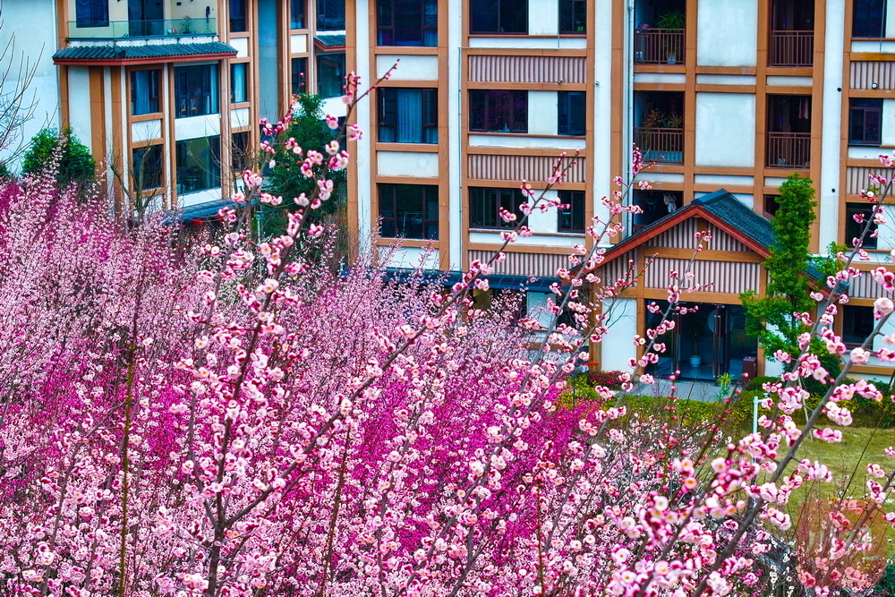 “目前,梅花谷精灵乐园及周边梅花正值盛花期,预计花期可持续至春节期间。”名山区相关负责人介绍,目前名山区盛放的梅花以朱砂梅、宫粉梅等品种为主。十里梅香·茶源小圳、市民活动中心等主要赏梅点均免费向公众开放。