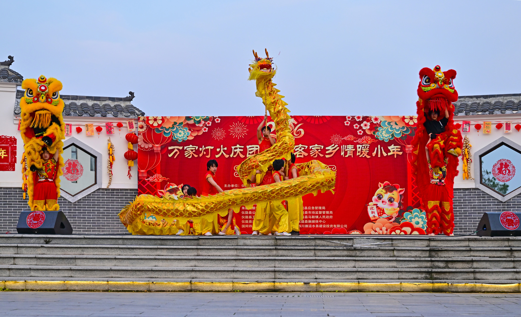活动现场,客家金龙、非遗鱼灯轮番展演,《祥龙瑞狮客家年》等客家特色节目与《朱德的扁担三尺三》等红色经典曲目交织上演,展现了红色文化与客家文化的有机融合。