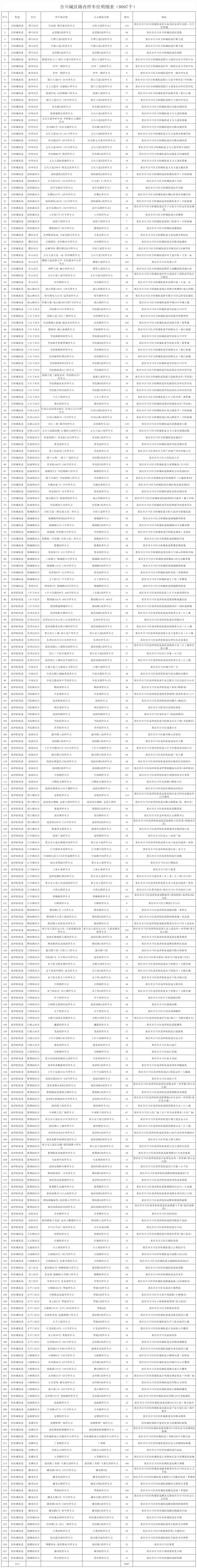 1.合川城区范围内路内停车位8097个(详见具体明细表)。