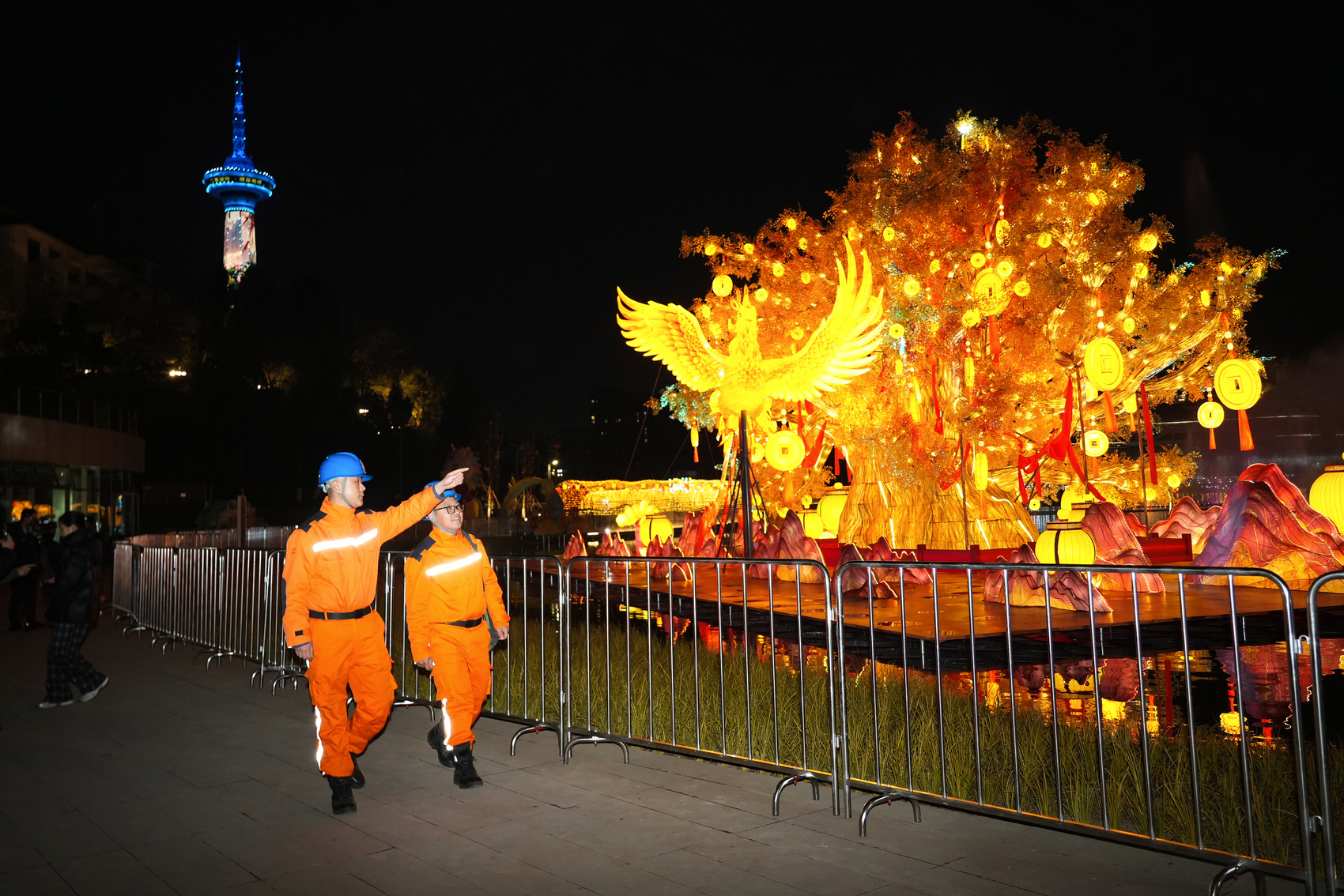 为保障灯会活动顺利举办,国网德阳供电公司提前谋划、周密部署,该公司市区供电中心,德阳明源电力集团多个专业紧密协作,全方位筑牢供电保障防线:主动对接灯会主办方,结合现场勘查结果及实际用电需求“量身定制”专项保电方案;优化电网运行方式,形成10千伏线路“一主供+两备供”的运行模式,提高供电可靠性;利用“人工+无人机+可视化”的多重巡检手段,对保供相关的6条220千伏、2条110千伏、3条10千伏线路及2座重点变电站设备开展多轮次特巡,提前排查消除安全隐患。