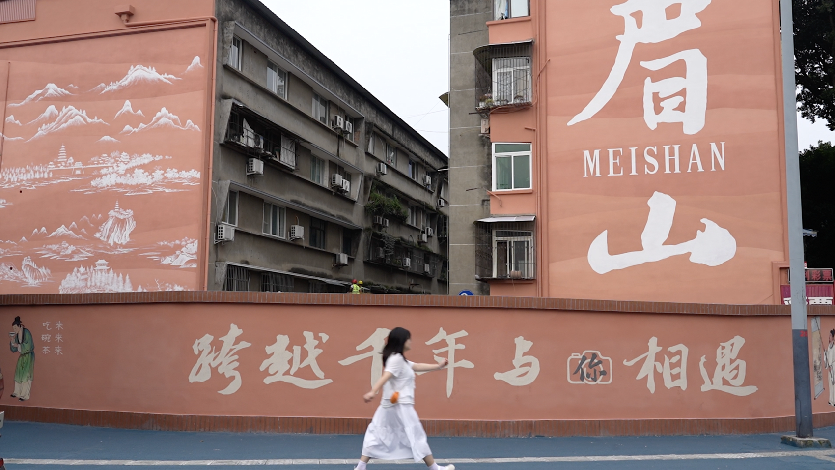 东坡区01住宅区外的围墙新晋为一处网红打卡墙。