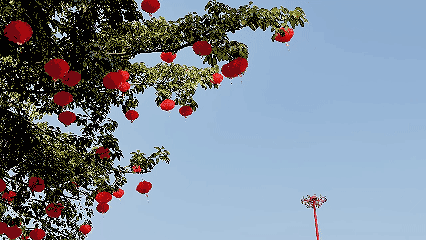 红灯笼挂满行道树街头