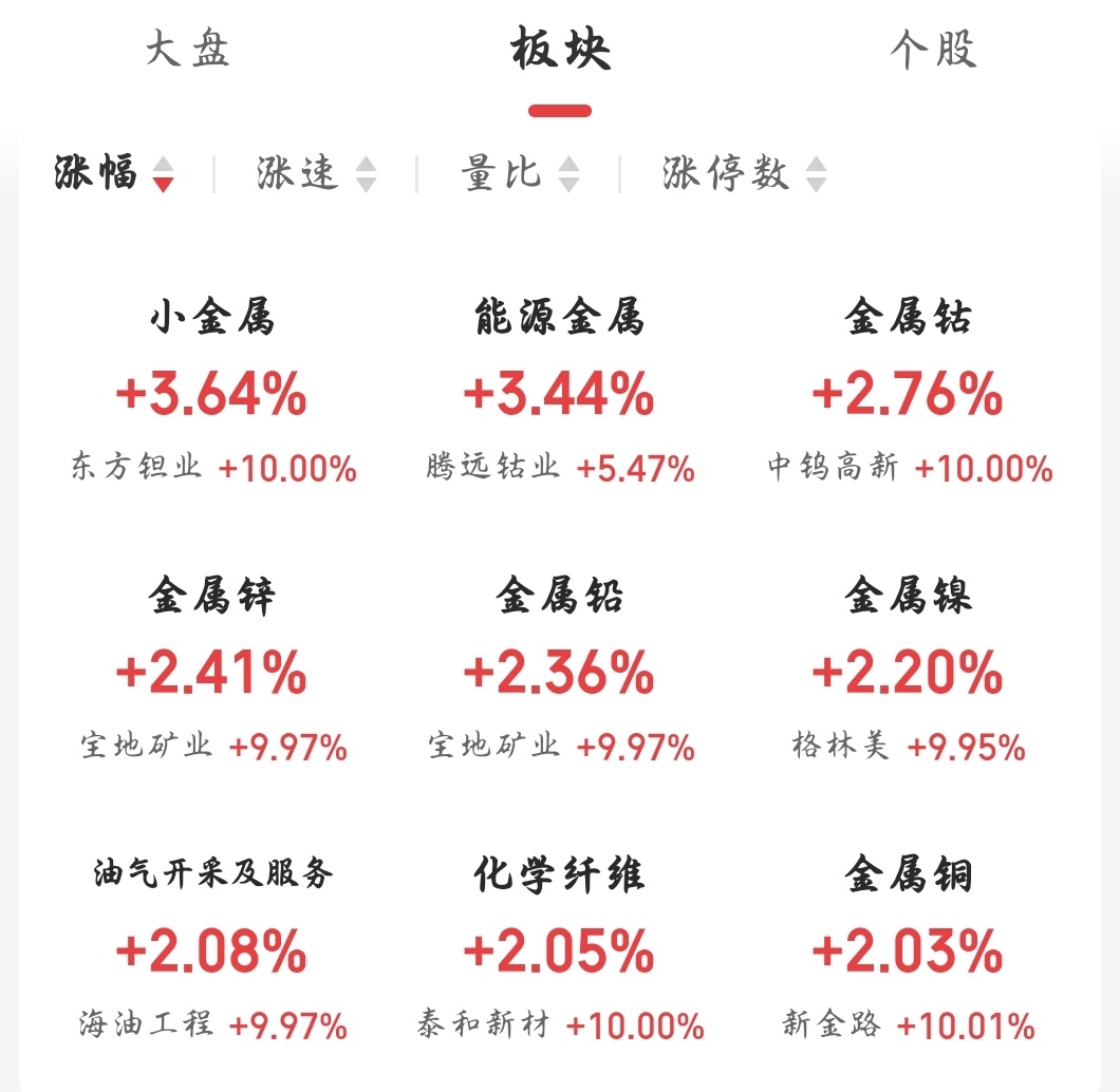 有色金属板块今日表现稳健。