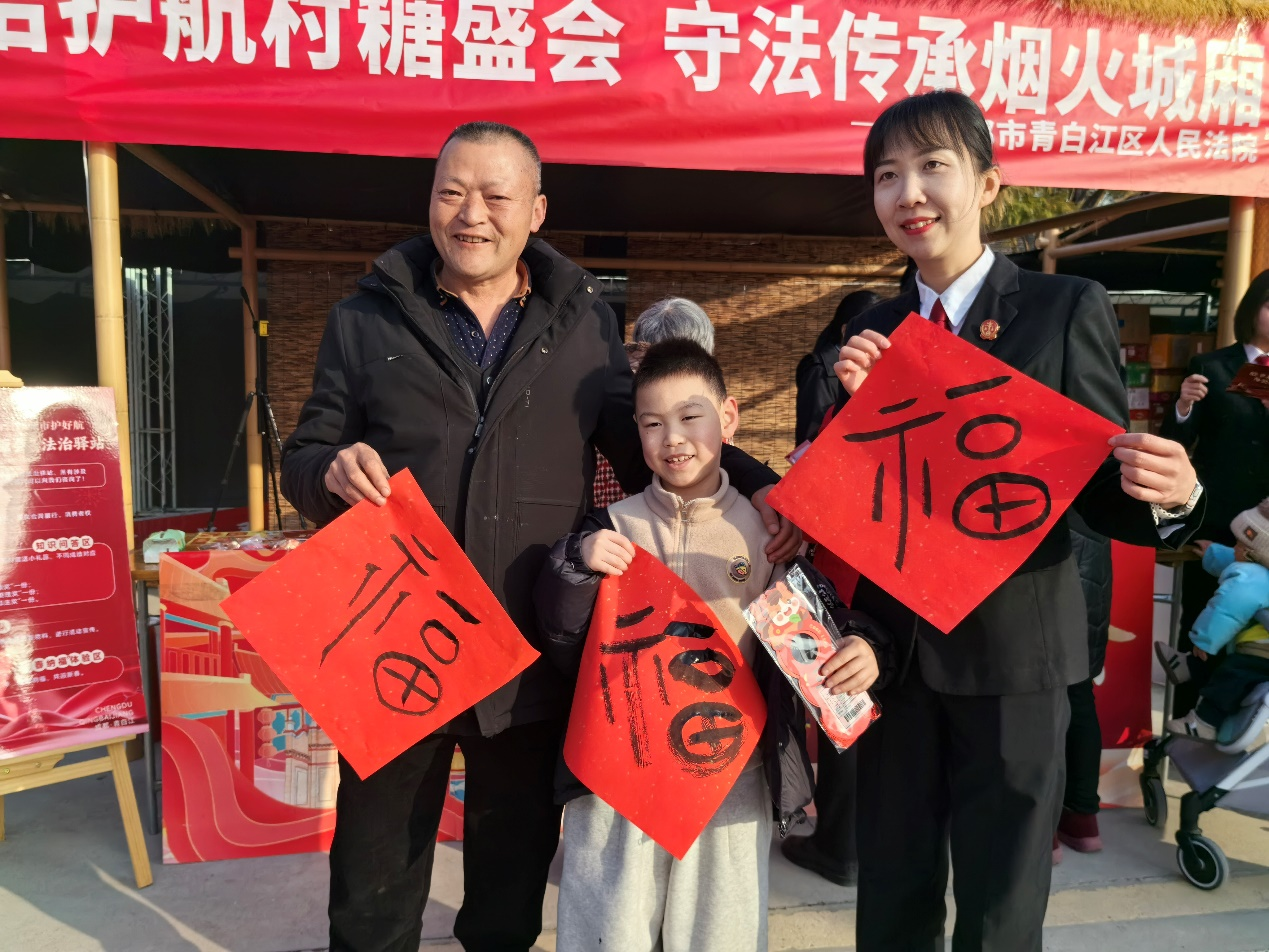 “我们希望通过这样轻松亲切的方式,让群众边逛集市、边品年味的同时,也能随时咨询法律问题,领取普法‘年货’,甚至通过‘绿色通道’快速化解纠纷,真正让法治融入日常生活,守护万家安康。”成都市青白江区法院行政庭副庭长冯允怡说。