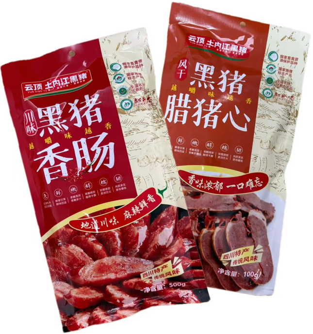 无肉不欢星人狂喜!活动首日率先登场的,是所有四川人都喜欢的腊味。价值38元/袋的黑猪风干猪心和价值118元/袋的黑猪肉香肠,精选内江黑猪的弹嫩猪心与川味香肠,传统烟熏慢制,咸香入味不腻口。下饭佐酒、蒸炒皆可,一口就上头~过年囤它,餐桌C位稳了!