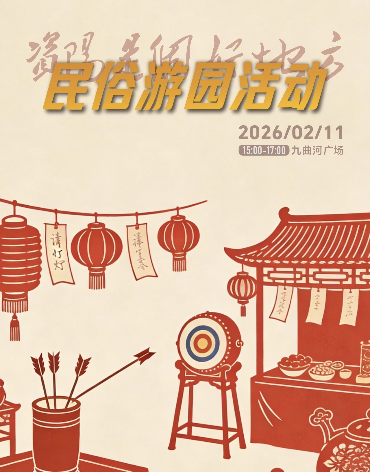 收获一次非遗民俗的“沉浸式”体验。大年初二(2月11日),九曲河广场的非遗文化集市及民俗游园,糖画、面人、竹编、川剧变脸等技艺触手可及,投壶、拓印、猜谜等游戏趣味盎然。三贤文化公园将持续举办文创展销与非遗传习活动。