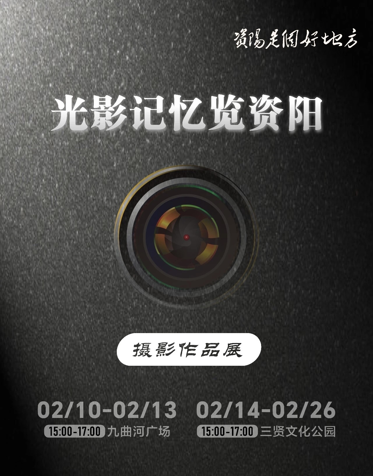 11、“镂月裁云映资阳”剪纸、摄影、美术创作展。2月10日至13日(九曲河广场)、2月14日至26日(三贤文化公园),同步举办。“镂月裁云映资阳”剪纸创作展、以“非遗+创意”为核心,设《名贤昭辉》《古韵凝华》《匠心守艺》《山水灵韵》《时代华章》五个篇章,通过剪纸艺术讲述资阳故事、再现资阳历史人文。“美丽资阳新画卷”美术创作展将远古“资阳人”、濛溪河、安岳石窟等历史文化,陈毅故里、革命老区等红色文化,剪纸、竹编等非遗文化,区位交通、航空航天、重点产业、城乡融合等时代文化,以国画的美术手法创新再现。“光影记忆览资阳”摄影作品展围绕《古韵新生》《非遗匠心》《烟火资阳》《家乡情怀》《发展华章》篇章主题进行布展,汇编新老对比图,增强群众对资阳城市的认同和情感归属。