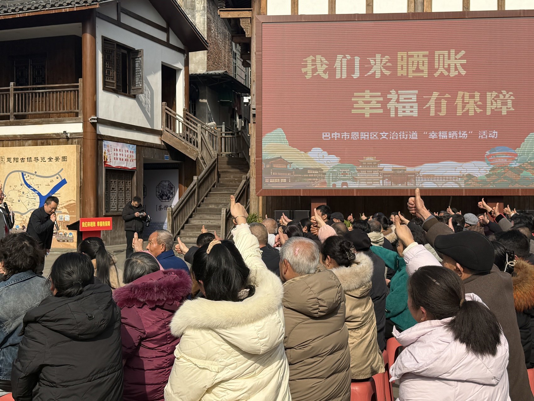 “近两年我们开展校园餐专项整治,每年拿出750万元专项资金,为农村义务教育学校配齐食堂工作人员,安装食堂智慧收费系统,资金流向全程可追溯……”1月27日,恩阳区文治街道回龙社区古镇戏楼前,恩阳区教育科技局、民政局、住房城乡建设局相关负责人先后登台,通过现场讲述、视频展示等方式“公开放榜”,晒出校园餐整治、养老服务提升、居住环境改造等年度民生答卷。