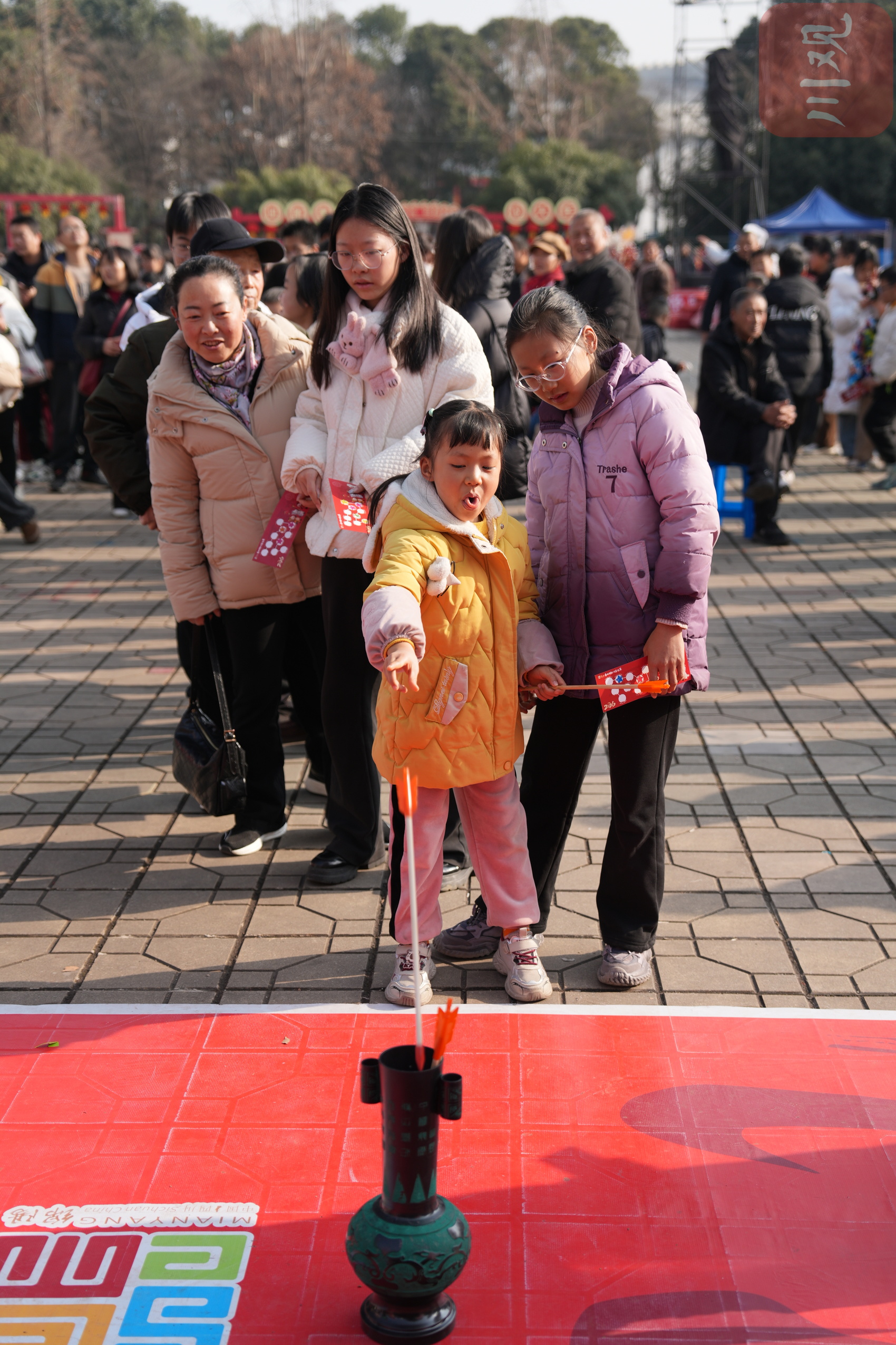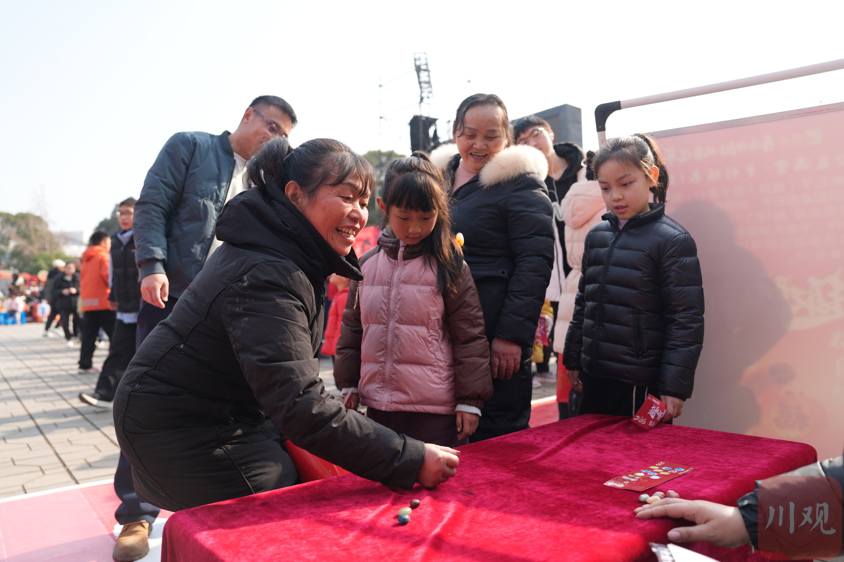 2月11日,市民在绵阳市安州区的民俗活动中做游戏。