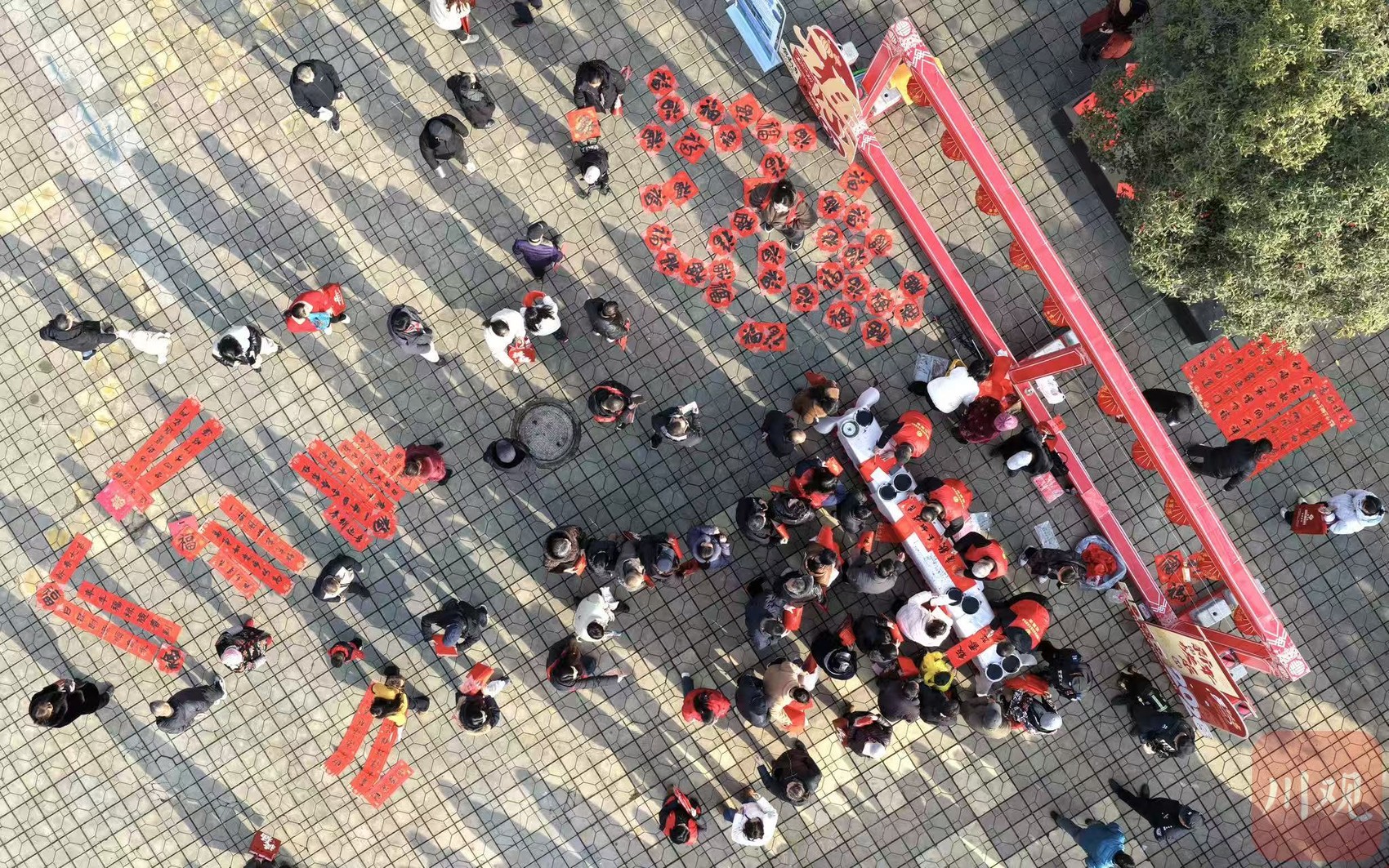 广场一角的猜灯谜、写春联体验区也挤着不少人,红纸灯谜挂在绳子上,写春联的桌子前,书法家挥毫泼墨。安州区文化广播电视和旅游局局长张琳琳看着眼前的热闹,如数家珍,“安州各乡镇本就有深厚的民俗底蕴,扭秧歌、舞龙舞狮有些乡镇已传承几十年,往年各乡镇都是各自开展新春表演,今年特意策划这场首届民俗巡游大赛,就是想把散落的民俗星光汇聚起来,让群众当舞台主角。”