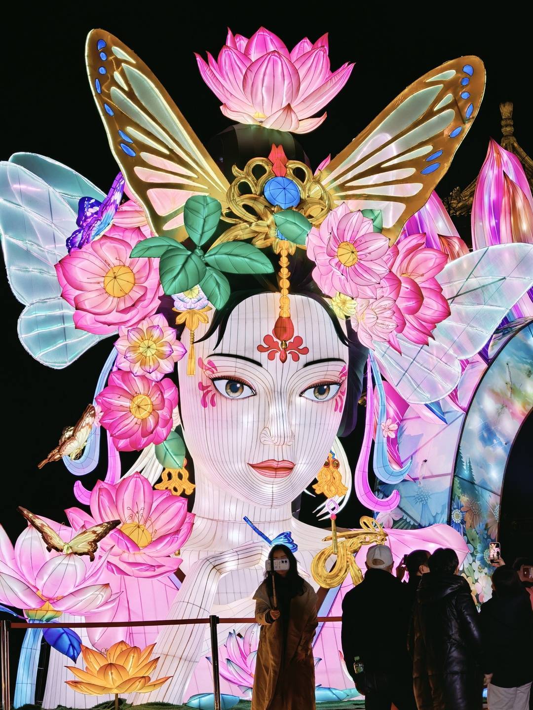 据悉,园区所有灯组均由来自“彩灯之乡”自贡的200多位工匠精心打造,经过设计、焊架、布光、裱糊、彩绘等多道工序,将传统彩灯技艺与现代科技光源完美结合,灯光流转间,既有传统民俗的厚重底蕴,又有现代光影的潮流活力。