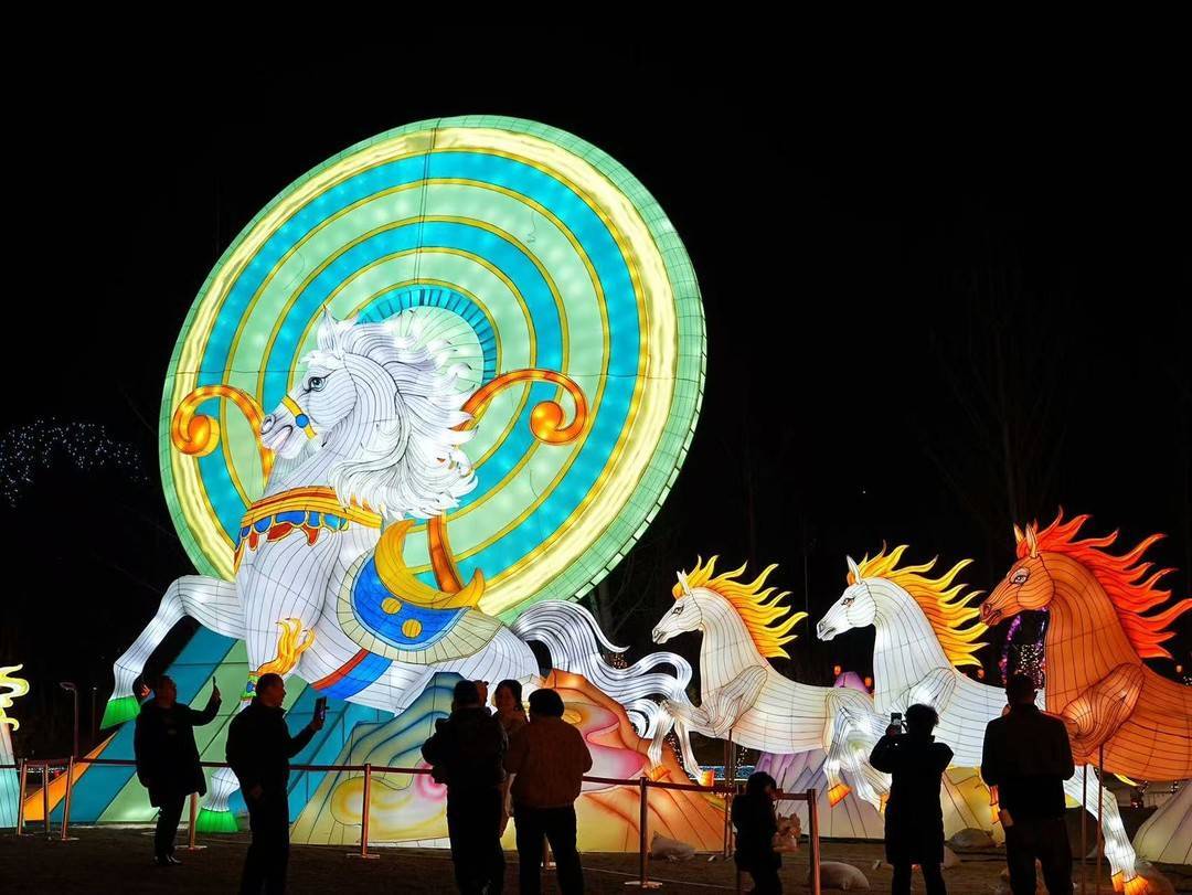 本次灯会精心布局三大主题灯区,以“骏越新春·灯映世园”“繁花秘境·蝶梦春晓”“年味九州·福满华夏”为核心脉络,紧扣2026马年主题,将骏马奔腾的昂扬姿态与新春喜庆元素融入灯组设计,同时兼顾南北年俗特色,生动呈现北方冰雪民俗与南方花灯文化的交融之美。
