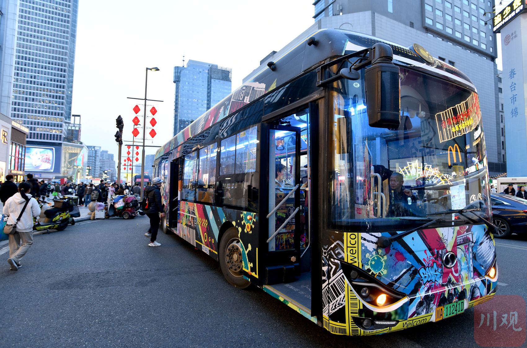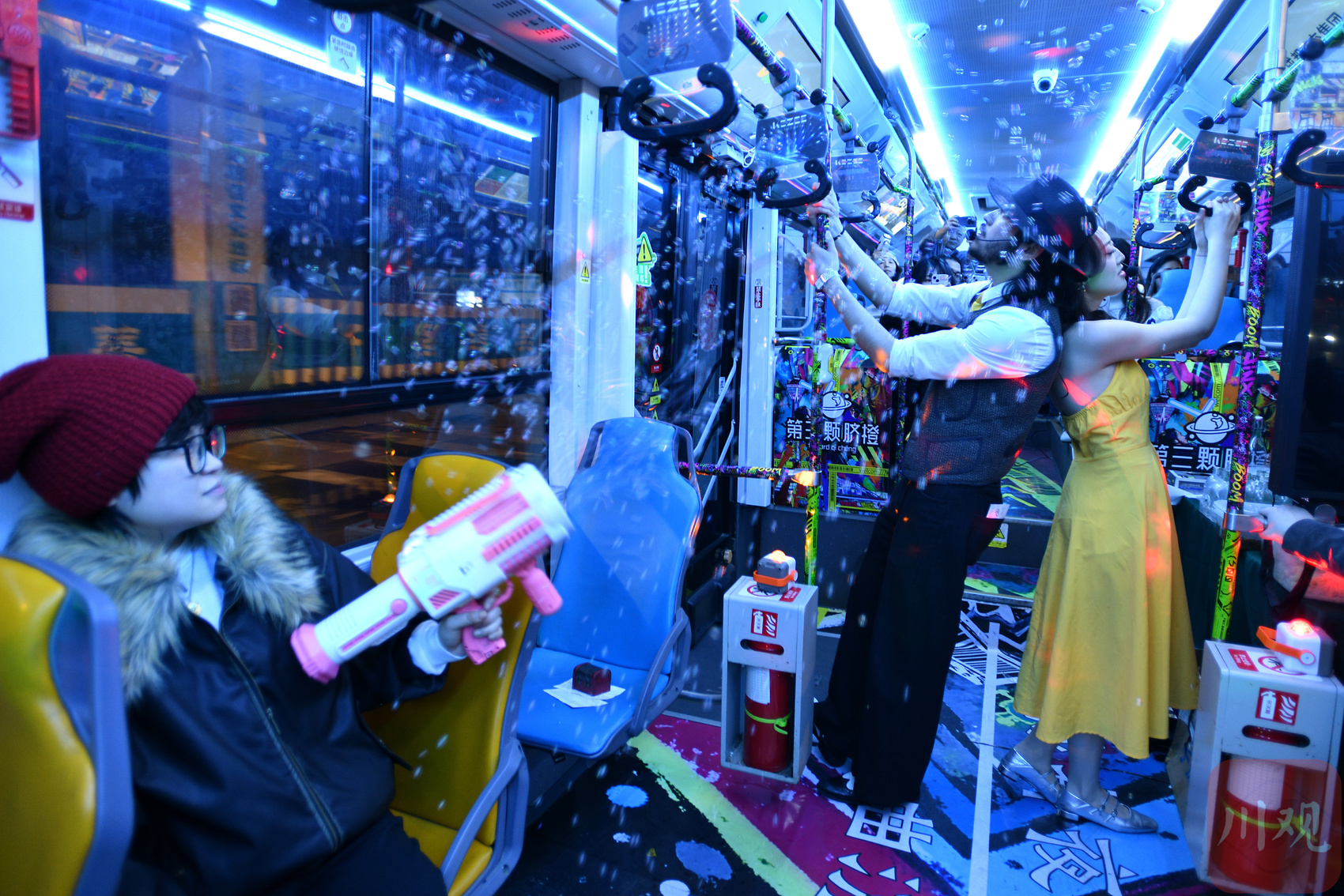 今年春节即将全新上线的锦江夜乐巴士,由成都公交集团、成都文旅集团和以第三颗脐橙为代表的成都夜经济商户联盟联合推出,以沉浸式体验夜成都消费场景为核心,将音乐、演出、美食、游戏等精华体验元素浓缩搬进巴士里,一路前行一路欢歌。2月11日,川观新闻记者提前体验了一趟夜乐巴士。