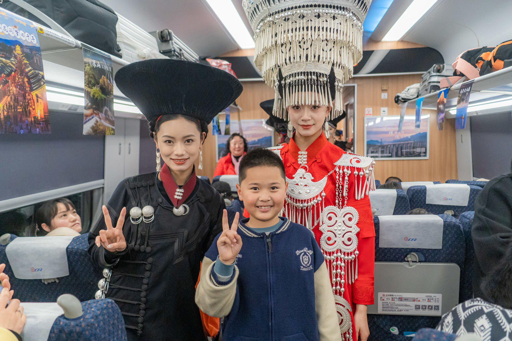 “彝家有传统,待客先用酒,彝乡多美酒,美酒敬宾朋……”欢快的彝族歌曲在动车上唱响。2月11日上午,从越西站开往西昌西站的D251次列车上,身着彝族盛装的演员穿行于车厢,为旅客讲解风光,献上歌舞,将车厢变成了展示大凉山风土人情的“移动展厅”。这是“流动的中国·彝路向春”春节主题宣传活动的一部分,铁路与当地文旅部门以此方式,为春运旅途注入浓郁的文化年味。