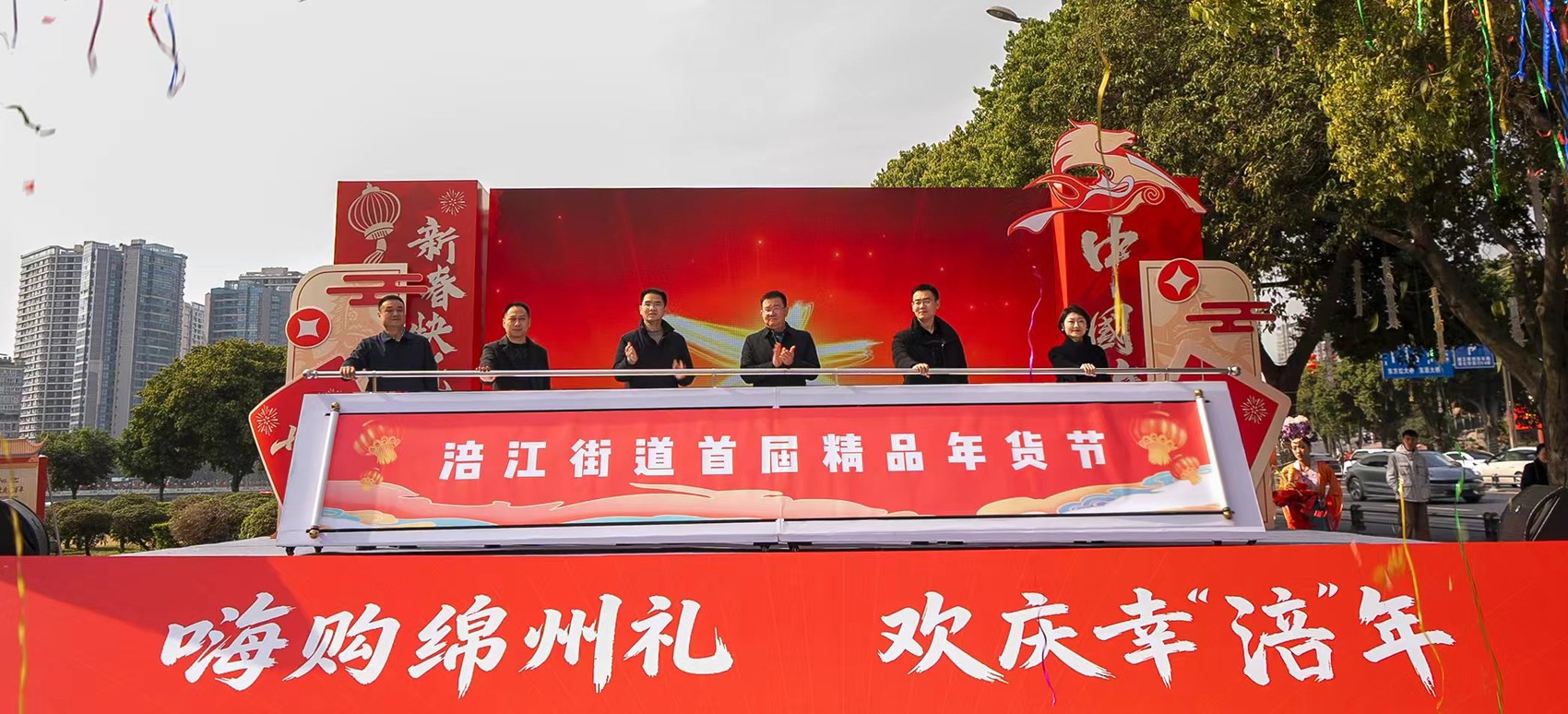 与此同时,涪江街道首届精品年货节也作为消费季重要组成,于2月10日抢先启幕。这场为期14天的年货市集,将年货采购、民俗游园、古风演绎融为一体。市民登越王楼祈福,品名楼晟宴唐风团年宴,尝地道绵阳风味,一站式购齐精品年货与文创好礼。开幕式上,彩带齐飞、鼓乐喧天,《鱼跃龙门》舞出龙马精神,嘉宾推杆卷轴,邀全城共赴这场“巴适”新春之约。